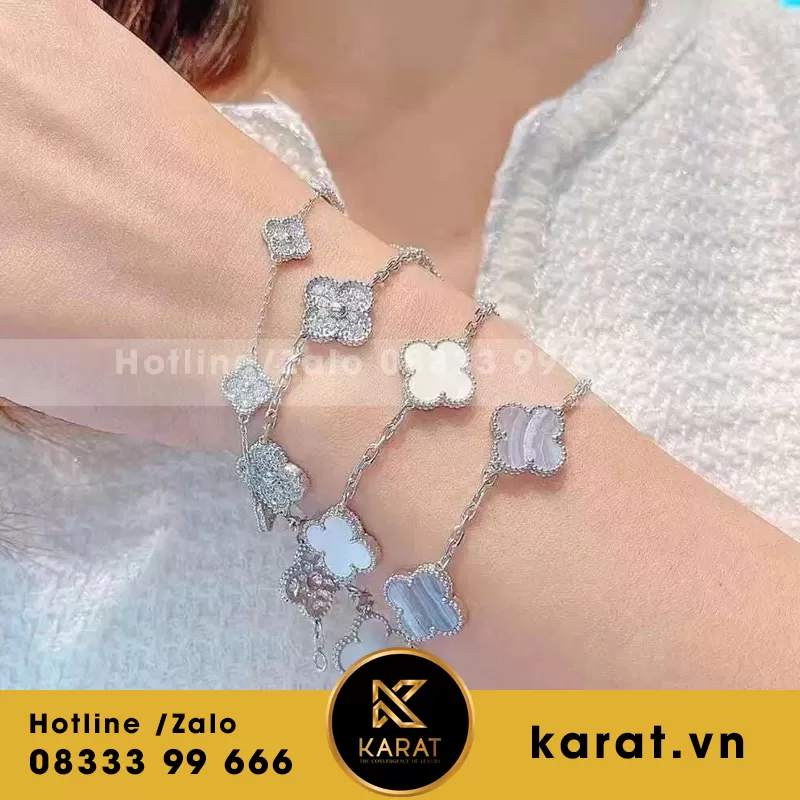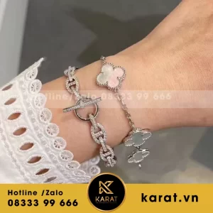Lắc Tay Hermer Chế Tác Vàng Trắng 18k Kim Cương Thiên Nhiên
