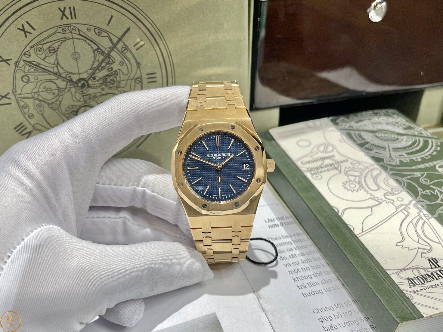Đồng hồ Audemars Piguet Royal Oak 15202BA chế tác vàng khối 18k của chúng tôi được chế tác tại thủ phủ Hồng Kông, nơi có các nhà máy sản xuất lớn, hiện đại, có các nghệ nhân lão luyện hàng đầu nên độ chuẩn auth đến 99%. Đồng hồ làm từ vàng 18k nguyên khối như hàng hãng. Đồng hồ được đi kèm là hộp sổ thẻ như hãng và giấy kiểm định vàng từ các trung tâm kiểm định uy tín như DOJI và GIV. Khách hàng có thể kiểm định lại ở bất cứ đâu nếu không phải vàng thật chúng tôi sẽ đền tiền gấp đôi.