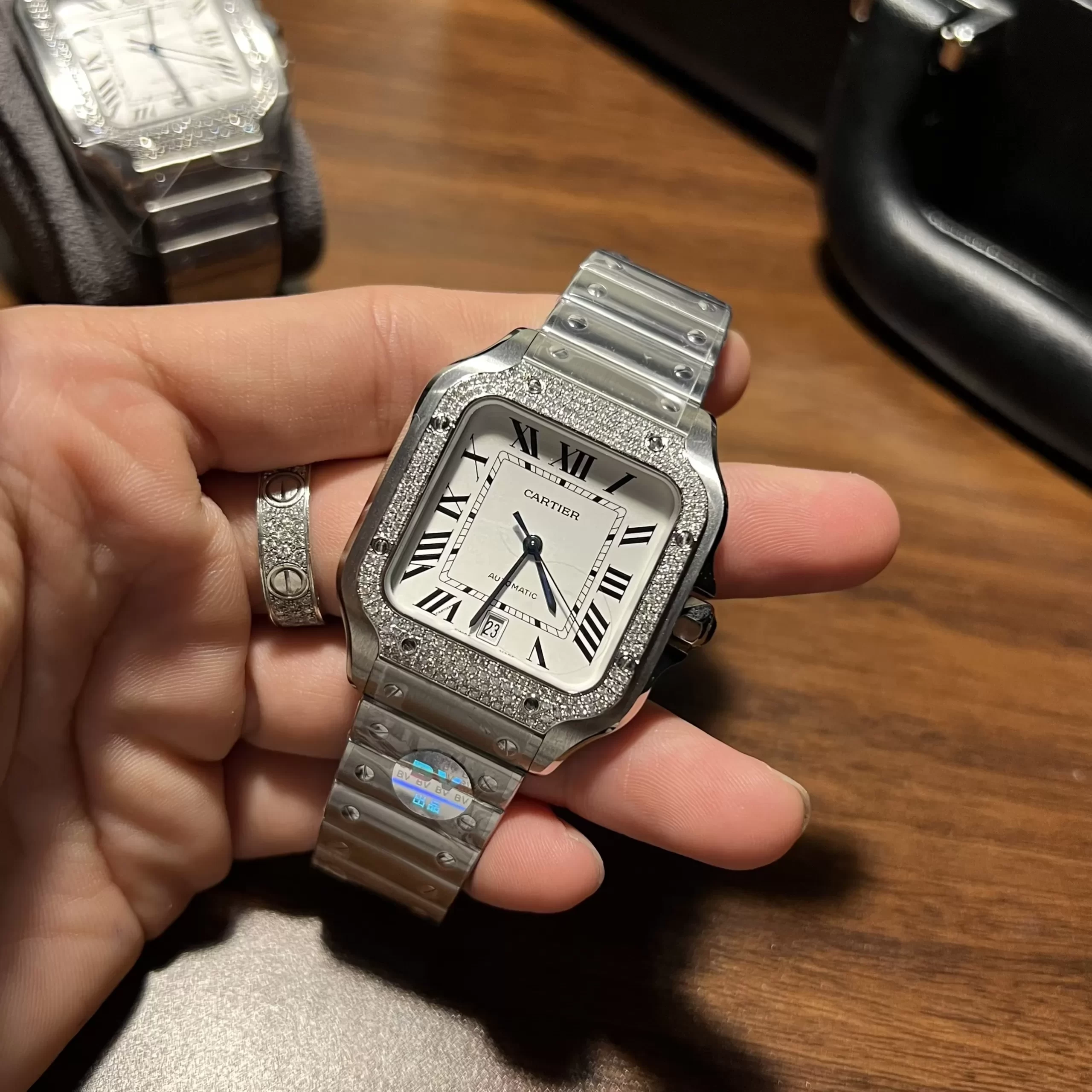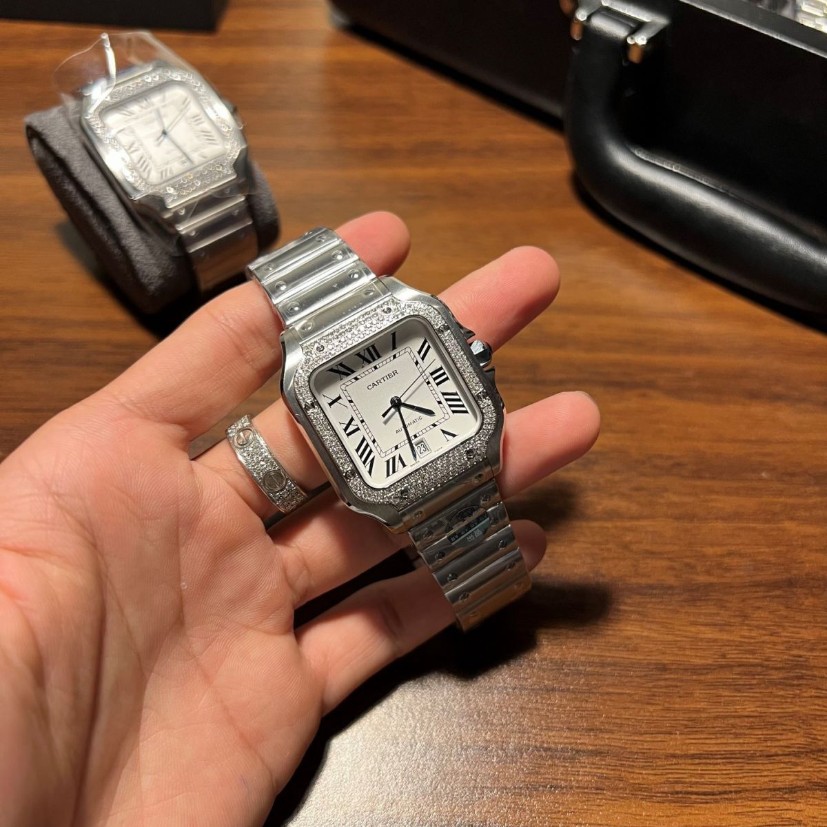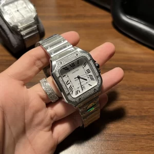Đồng hồ Cartier Santos rep 1:1 like auth độ viền kim cương – tự tin tỏa sáng