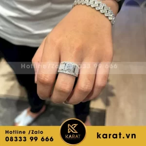 Nhẫn Đinh Cartier Chế tác Vàng Trắng 18k, Kim Cương Thiên Nhiên