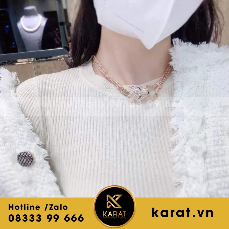 Nhẫn Cartier đầu báo vàng trắng 18k full kim