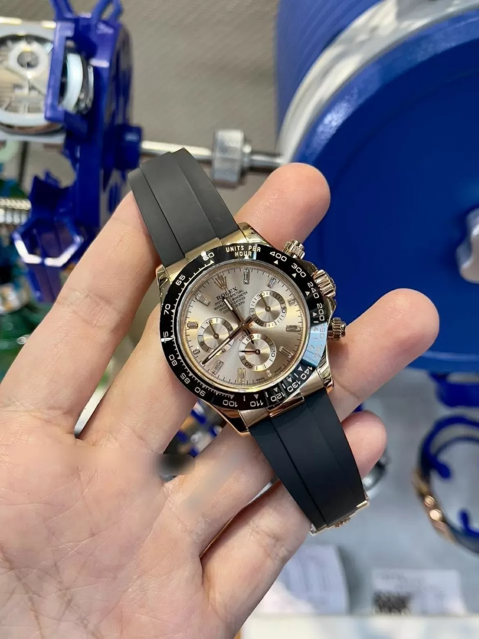 Đồn Hồ Rolex Rep 1:1 Cosmograph Daytona 116515LN Mặt Số Sundust Nạm Kim Cương Baguette