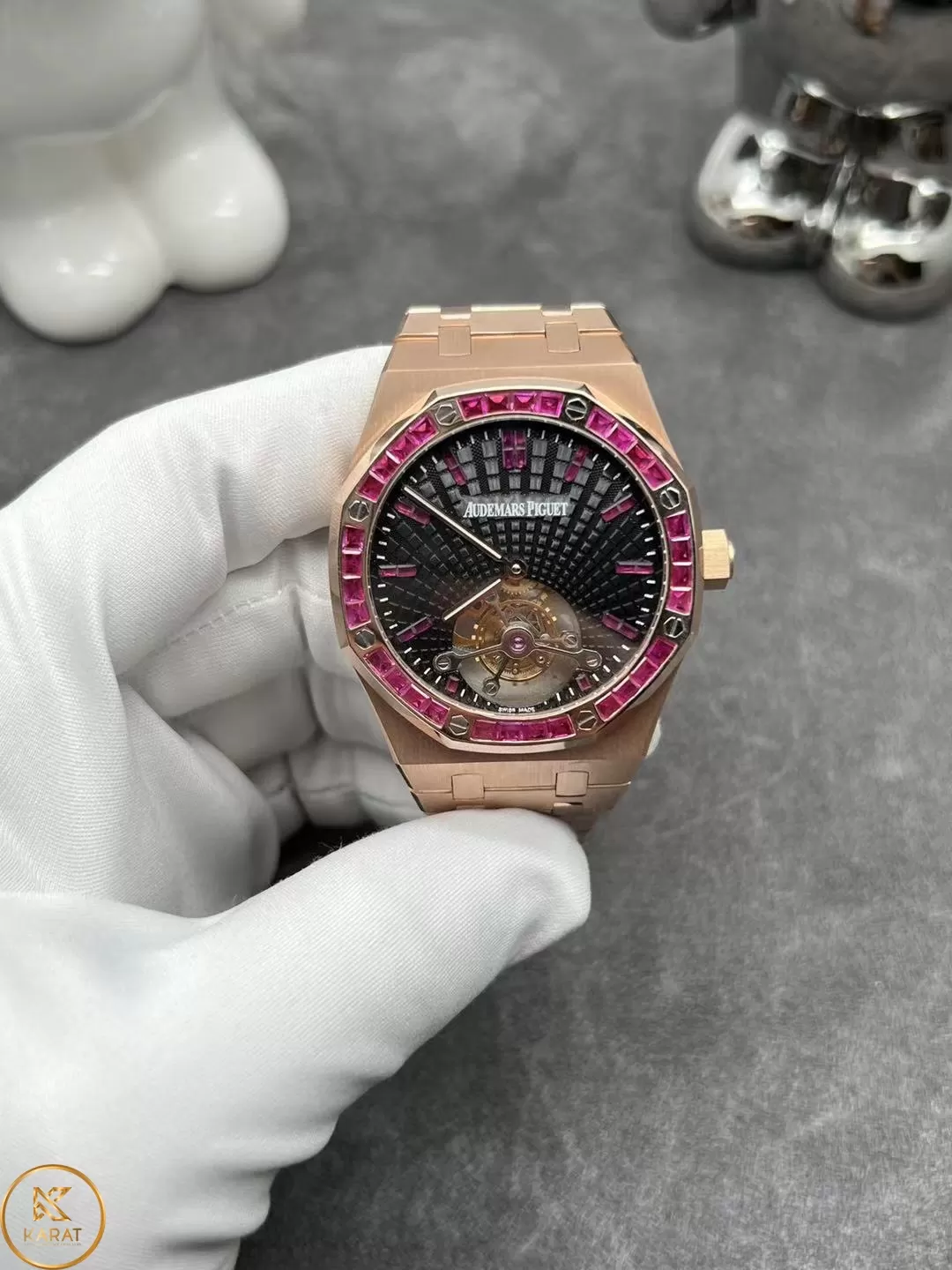 Đồng Hồ Audemars Piguet Royal Oak Flying Tourbillon Chế Tác Vàng Hồng 18k, Ruby thiên Nhiên
