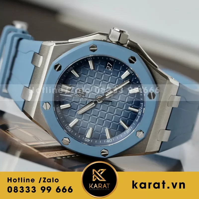 Đồng Hồ Audemars Piguet Royal Oak Offshore 15605SK Viền Cao Su Xanh Replica Cao Cấp 43mm