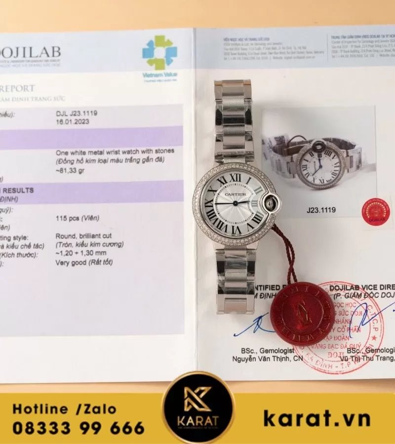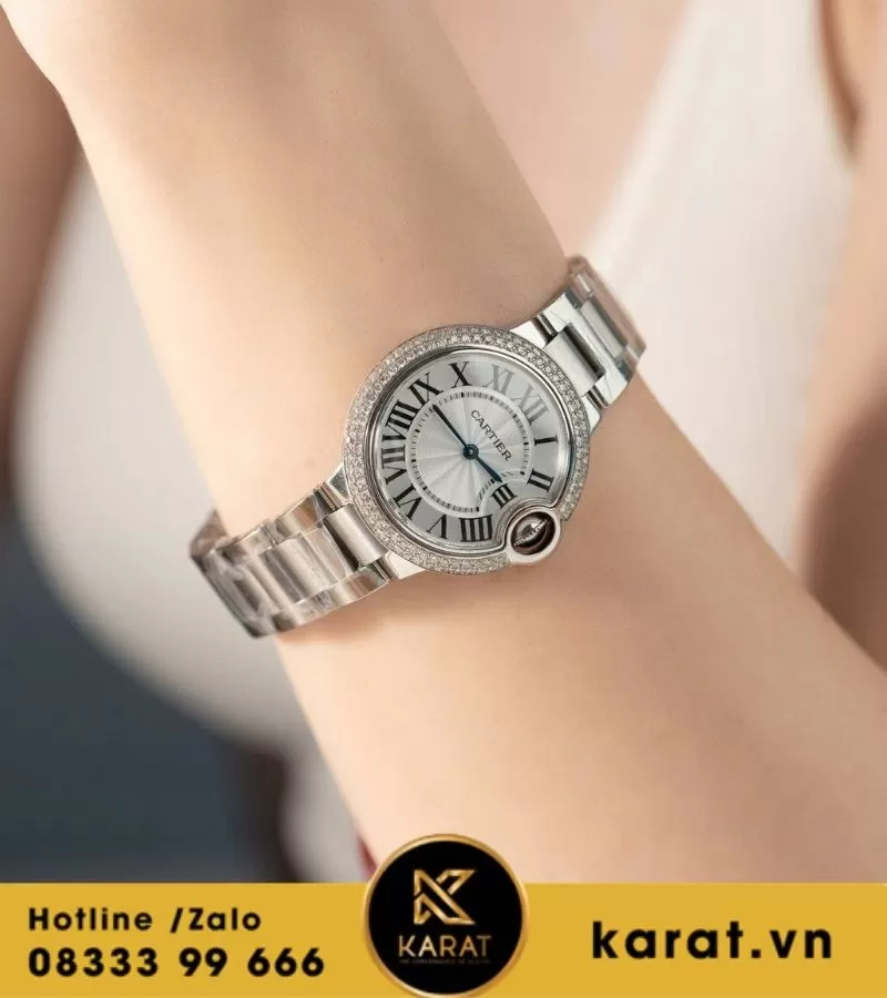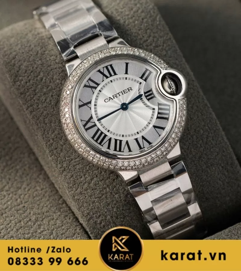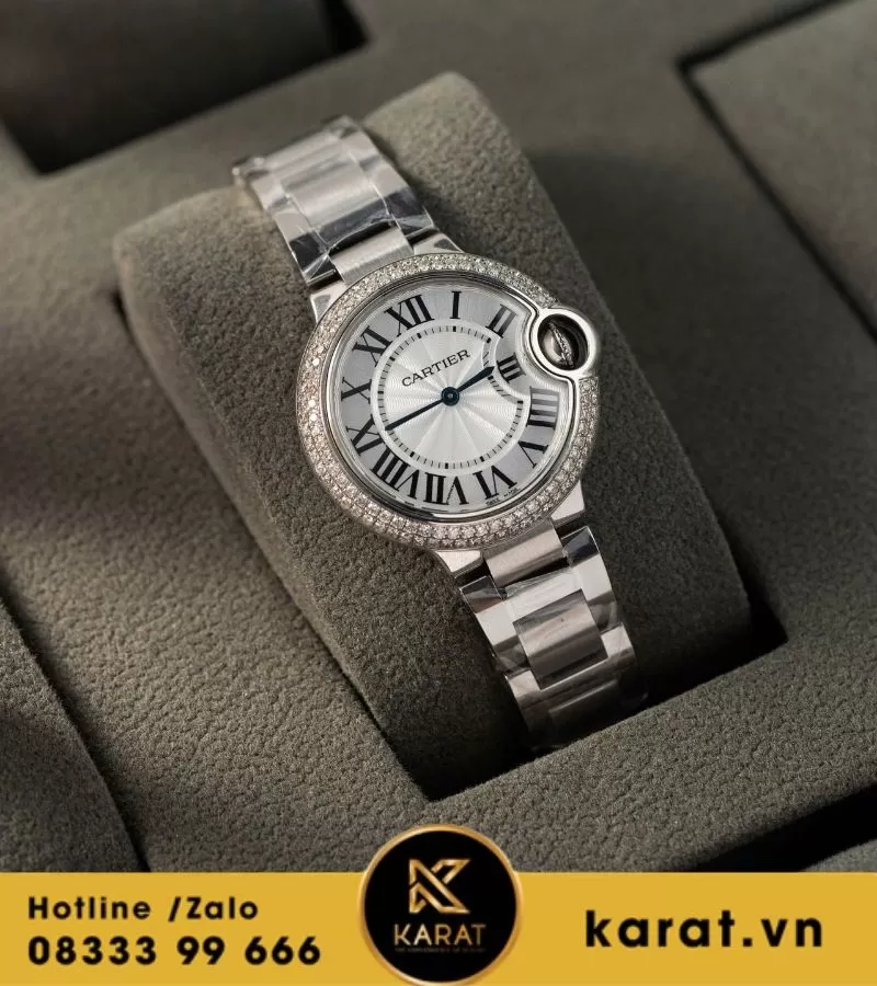 Đồng hồ Cartier Ballon Bleu 33mm độ viền kim cương thiên nhiên