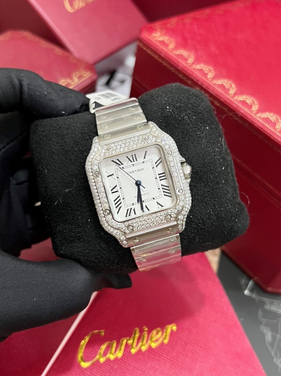 Mua đồng hồ Cartier Santos Replica 1-1 độ kim cương