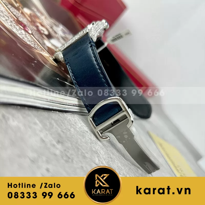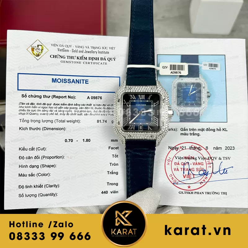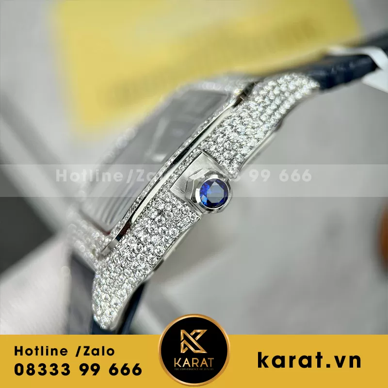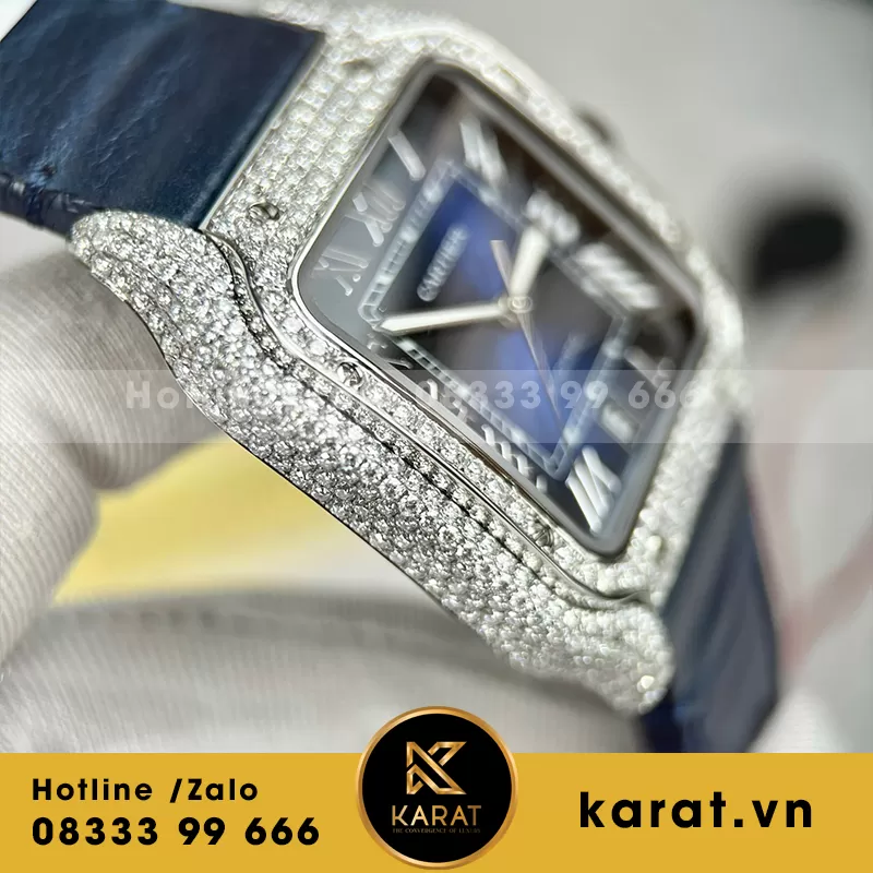 Đồng hồ cartier santos blue dial độ full moissanite