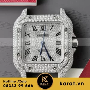 Đồng Hồ Cartier Santos Chế Tác Cọc Số + Vỏ Đính Kim Cương Moissanite 39.8mm