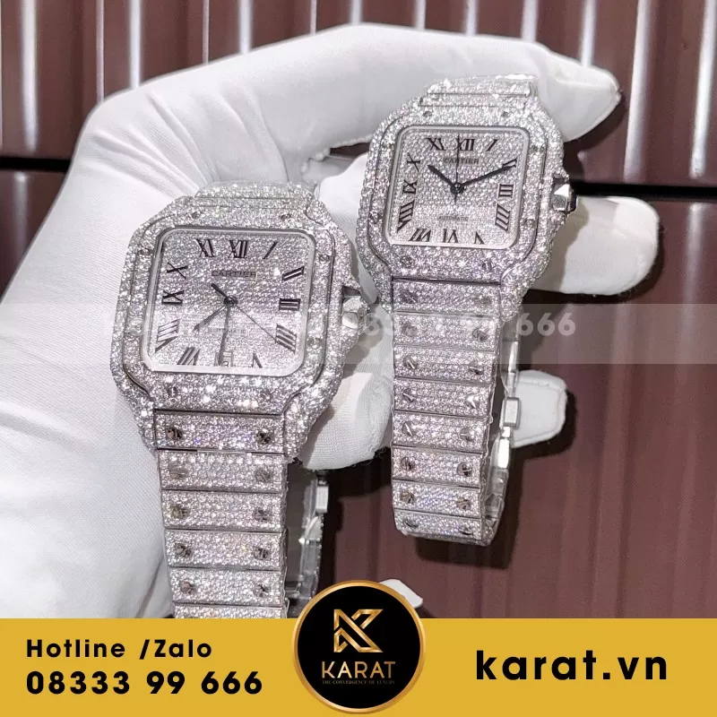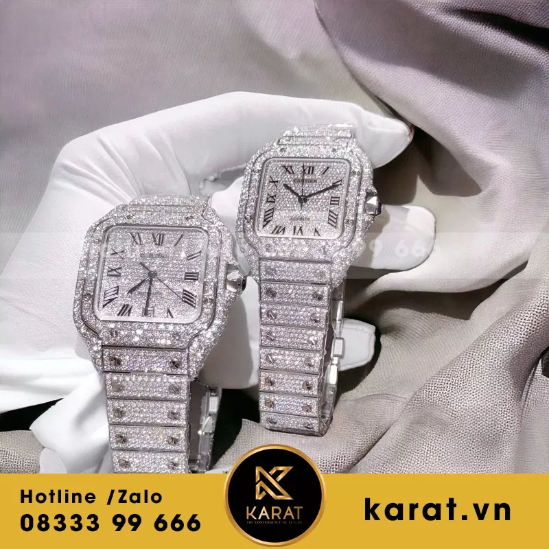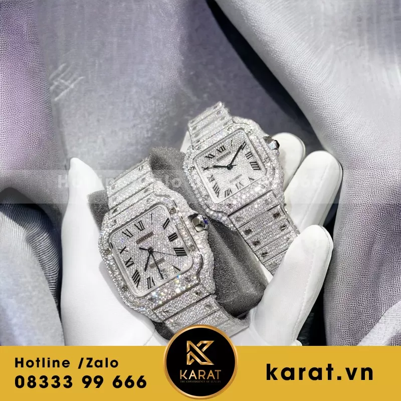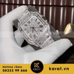 Đồng Hồ Cartier Santos Cọc Số Ả Rập Chế Tác Đính Full Kim Cương Moissanite Hong Kong 39.8mm