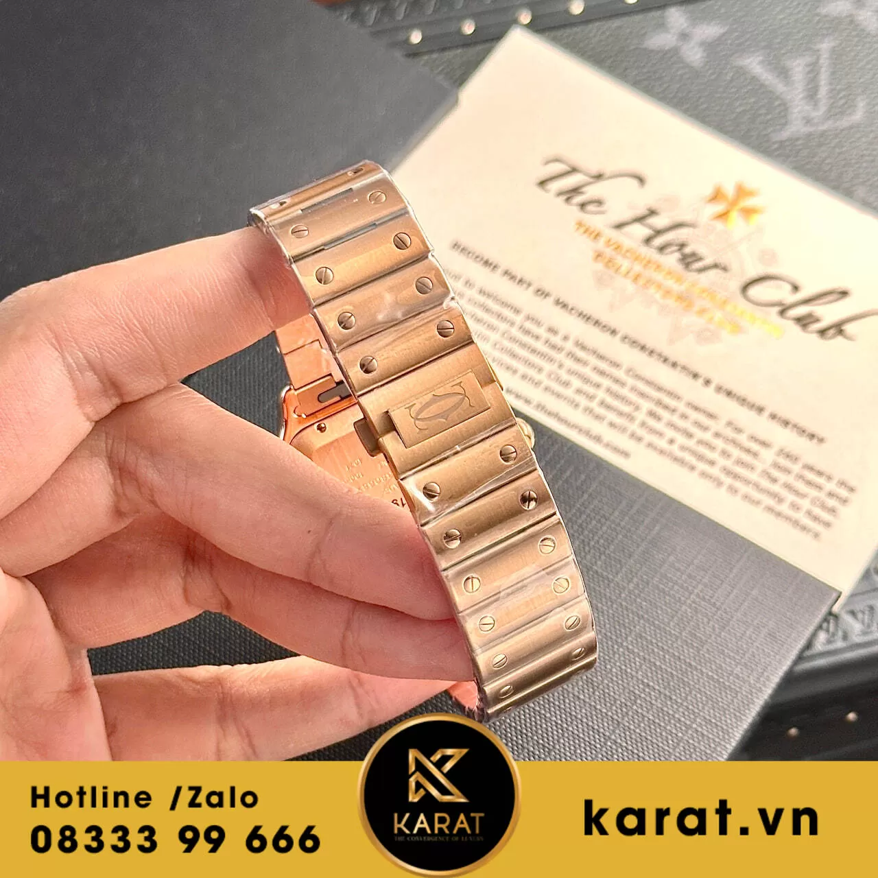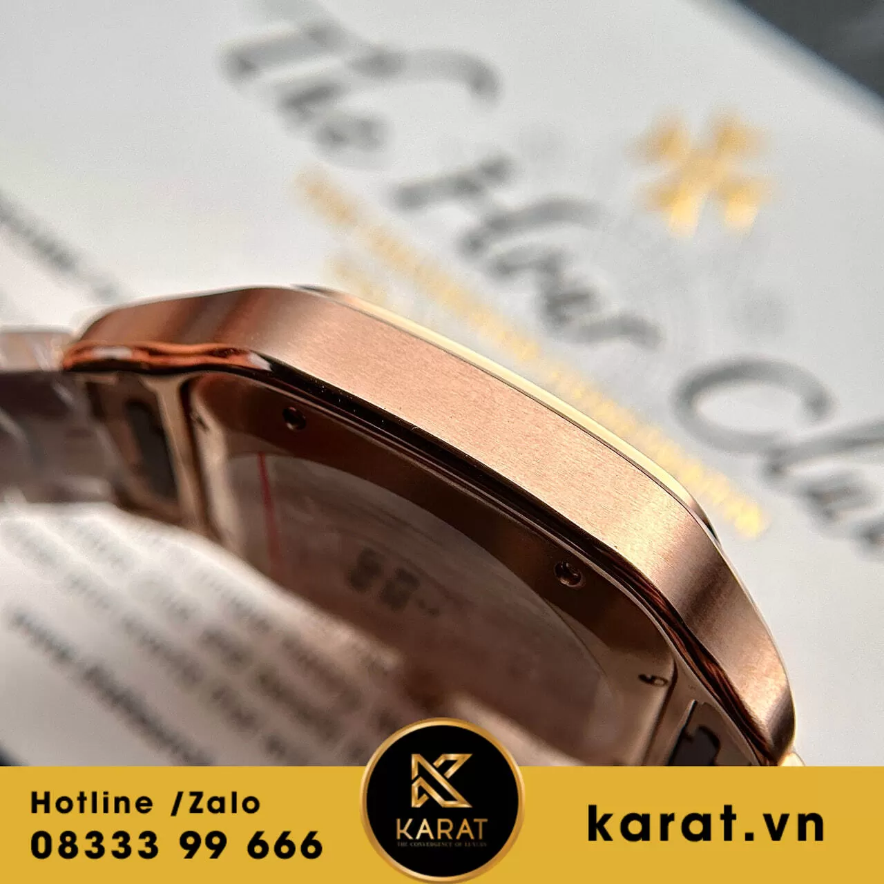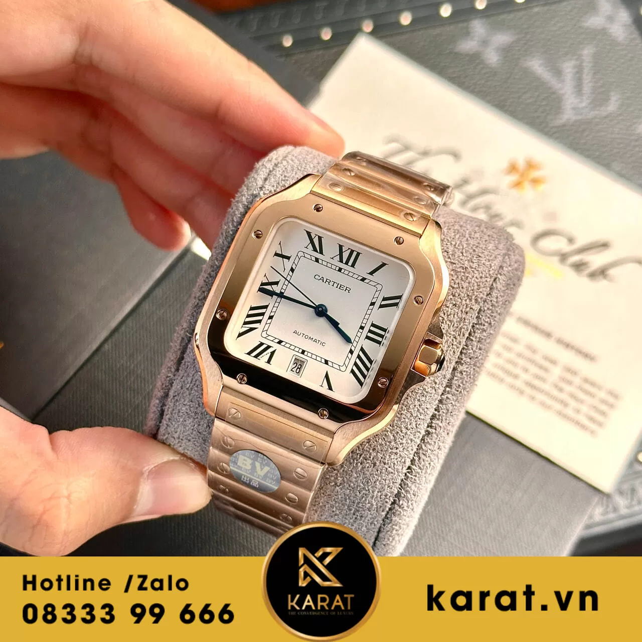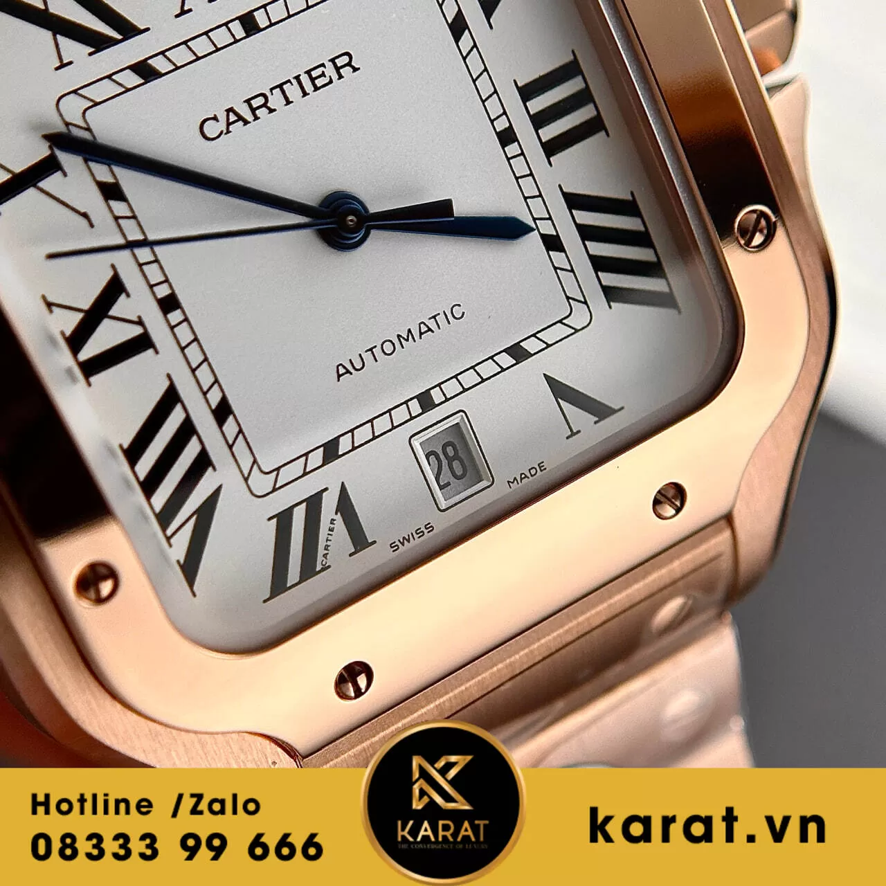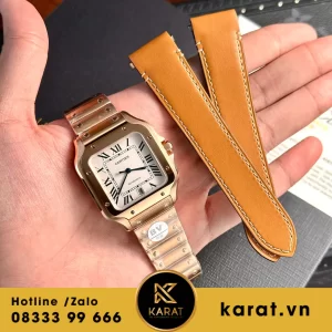 Cartier Santos vàng hồng replica từ BV Factory là sự kết hợp hoàn hảo giữa vẻ đẹp cổ điển và hiện đại. Với kích thước 39.8mm, chiếc đồng hồ này toát lên vẻ thanh lịch và tinh tế, phù hợp với nhiều phong cách khác nhau. Vỏ đồng hồ được chế tác từ chất liệu vàng hồng cao cấp, mang đến vẻ ngoài quý phái và sang trọng. Mặt số được thiết kế đơn giản nhưng không kém phần nổi bật với các vạch chỉ giờ sắc nét và kim đồng hồ tinh tế, tạo nên sự hài hòa và đẳng cấp.