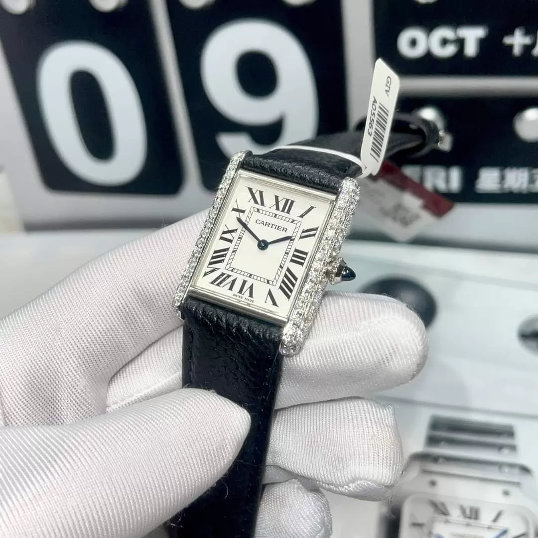 Đồng Hồ Cartier Siêu Cấp White Gold Diamond Tank Francaise