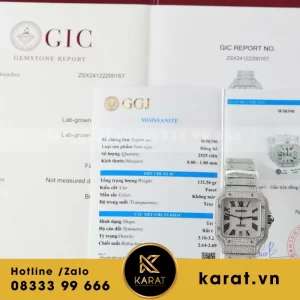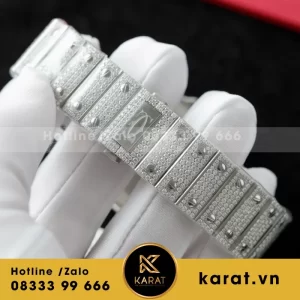 Đồng Hồ Chế Tác Cartier Santos Đính Full Kim Cương Moissanite Hong Kong 35.5 – 39.8mm