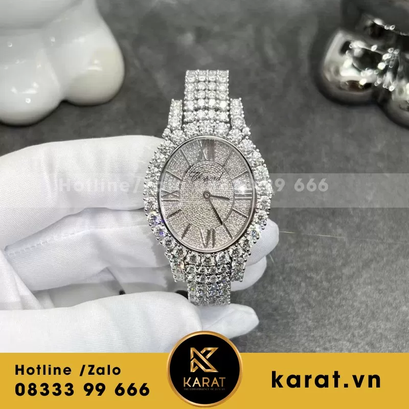 Đồng Hồ Chopard Chế Tác Vàng Trắng 18k kim cương Thiên Nhiên 34mm