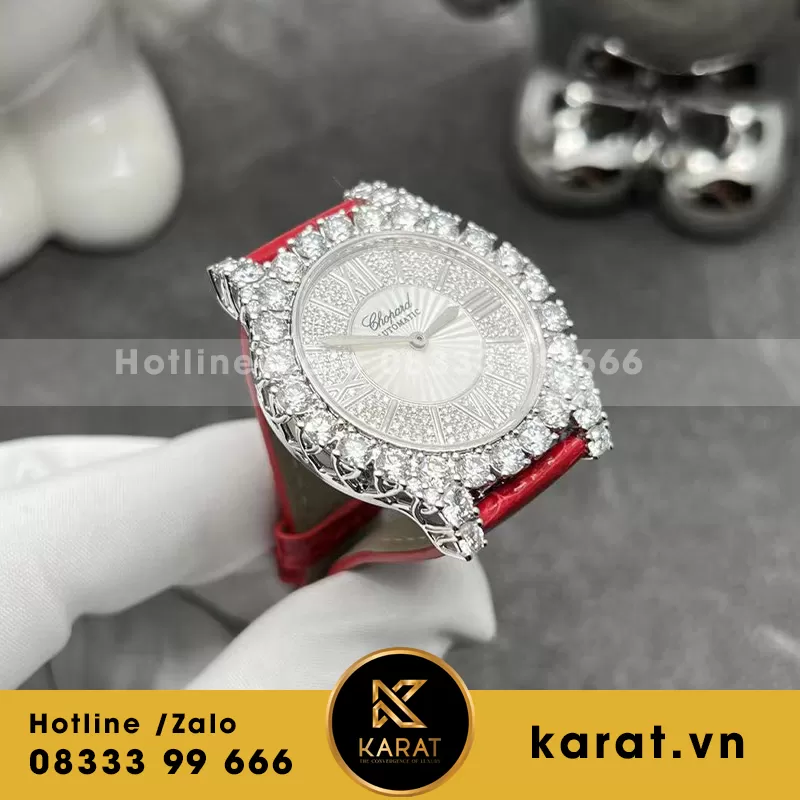 Đồng hồ chopard nữ chế tác vàng trắng 18k kim cương thiên nhiên