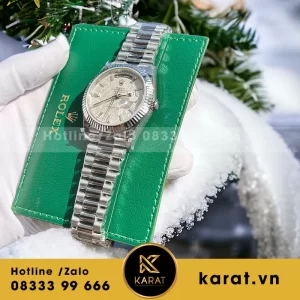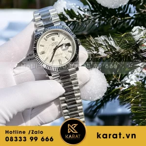 Đồng hồ daydate độ mặt tinh chỉnh cọc số moissanite baguette