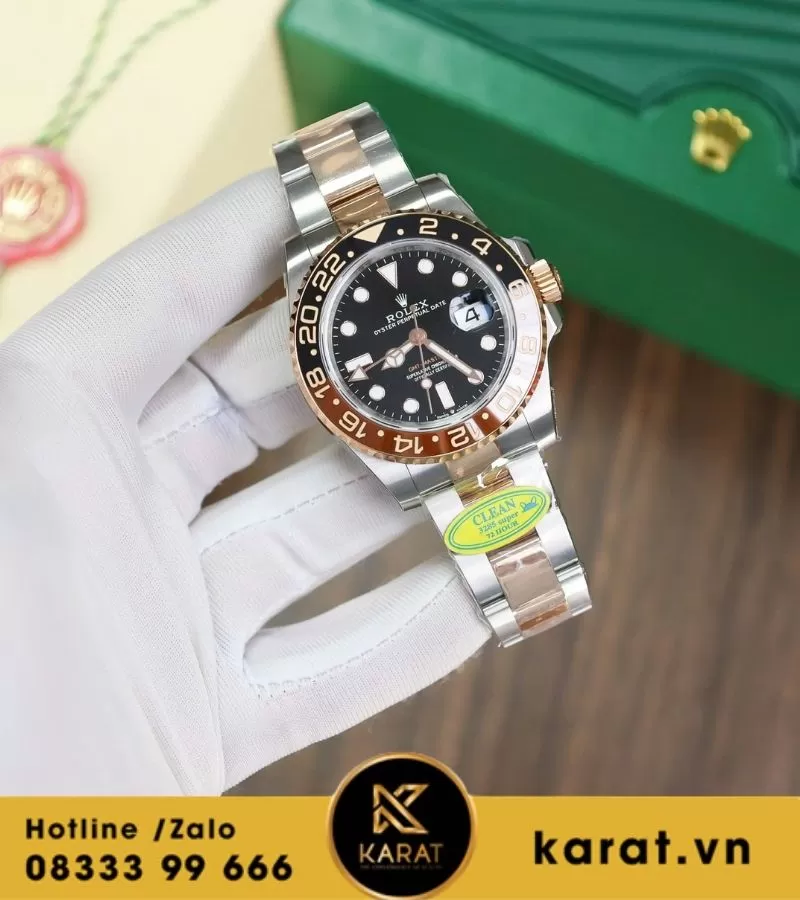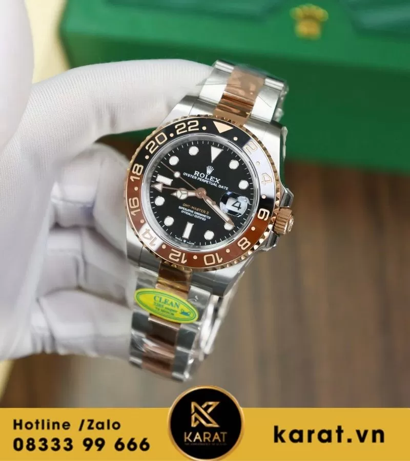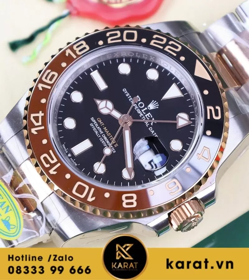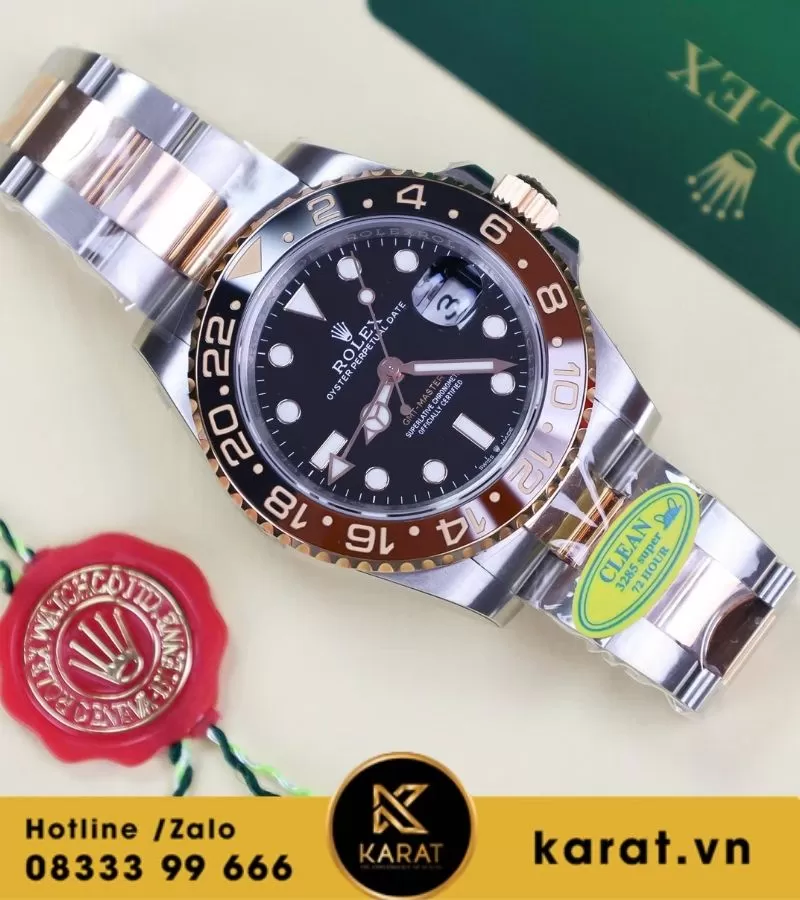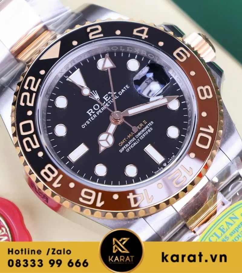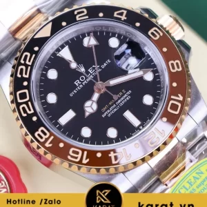 Đồng hồ GMT Rootbeer demi vàng hồng Cal 3285 replica