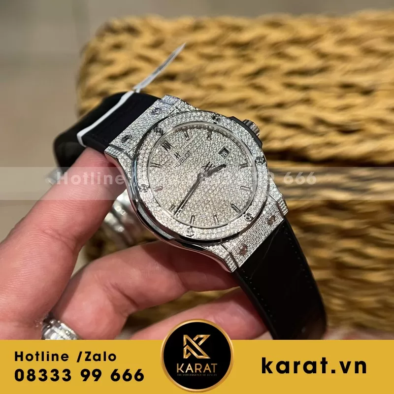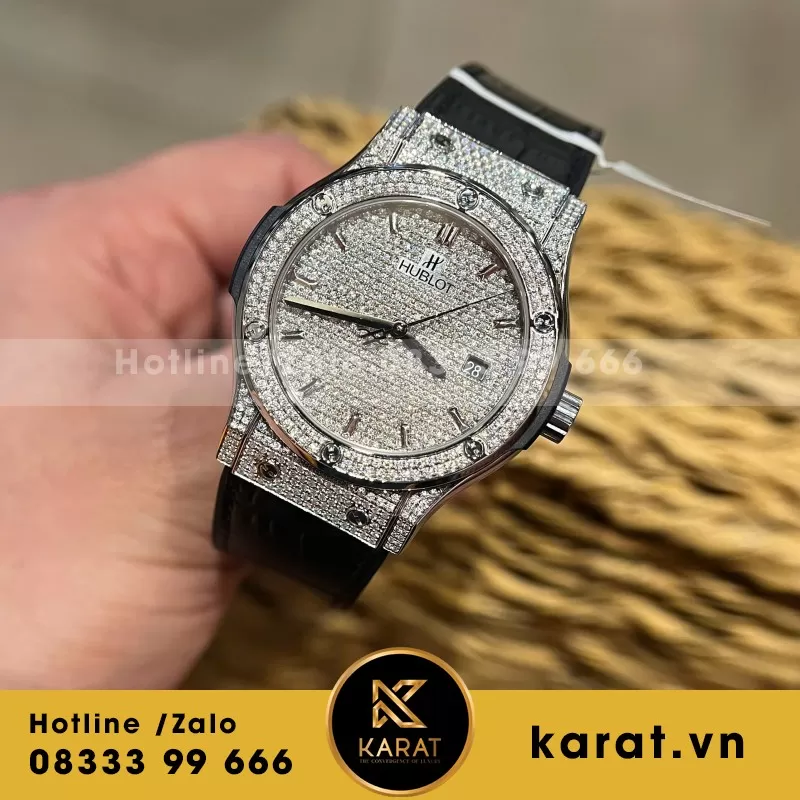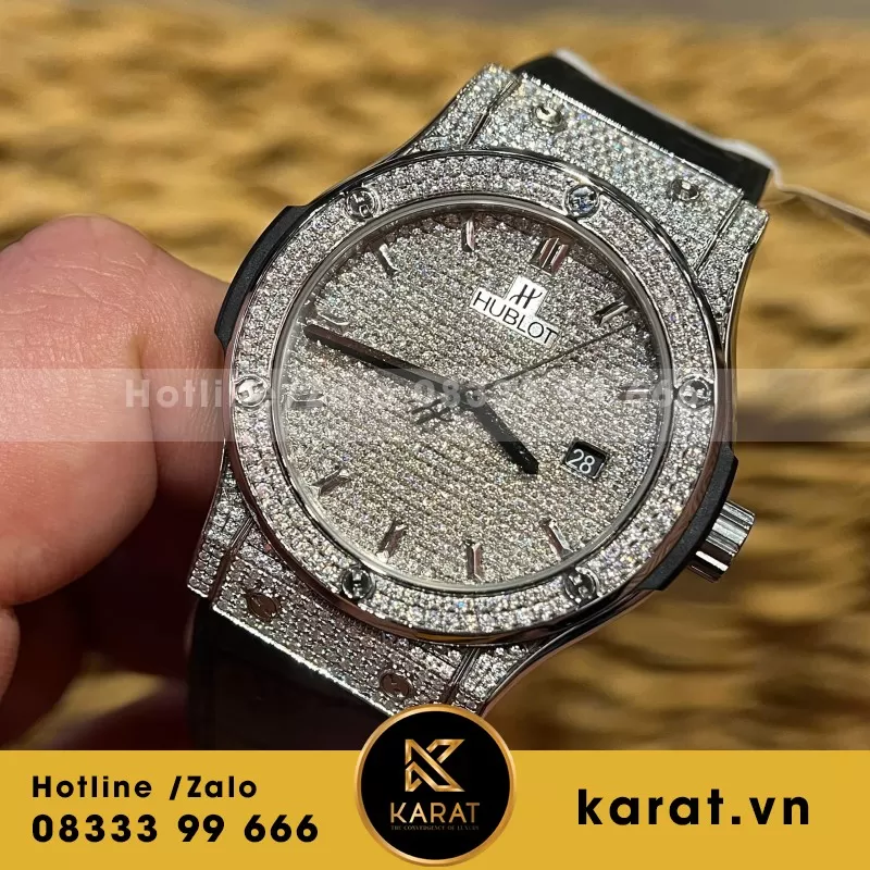 Đồng Hồ Hublot Độ Full Kim Cương Moissanite Màu Đen Chế Tác Hong Kong 42mm