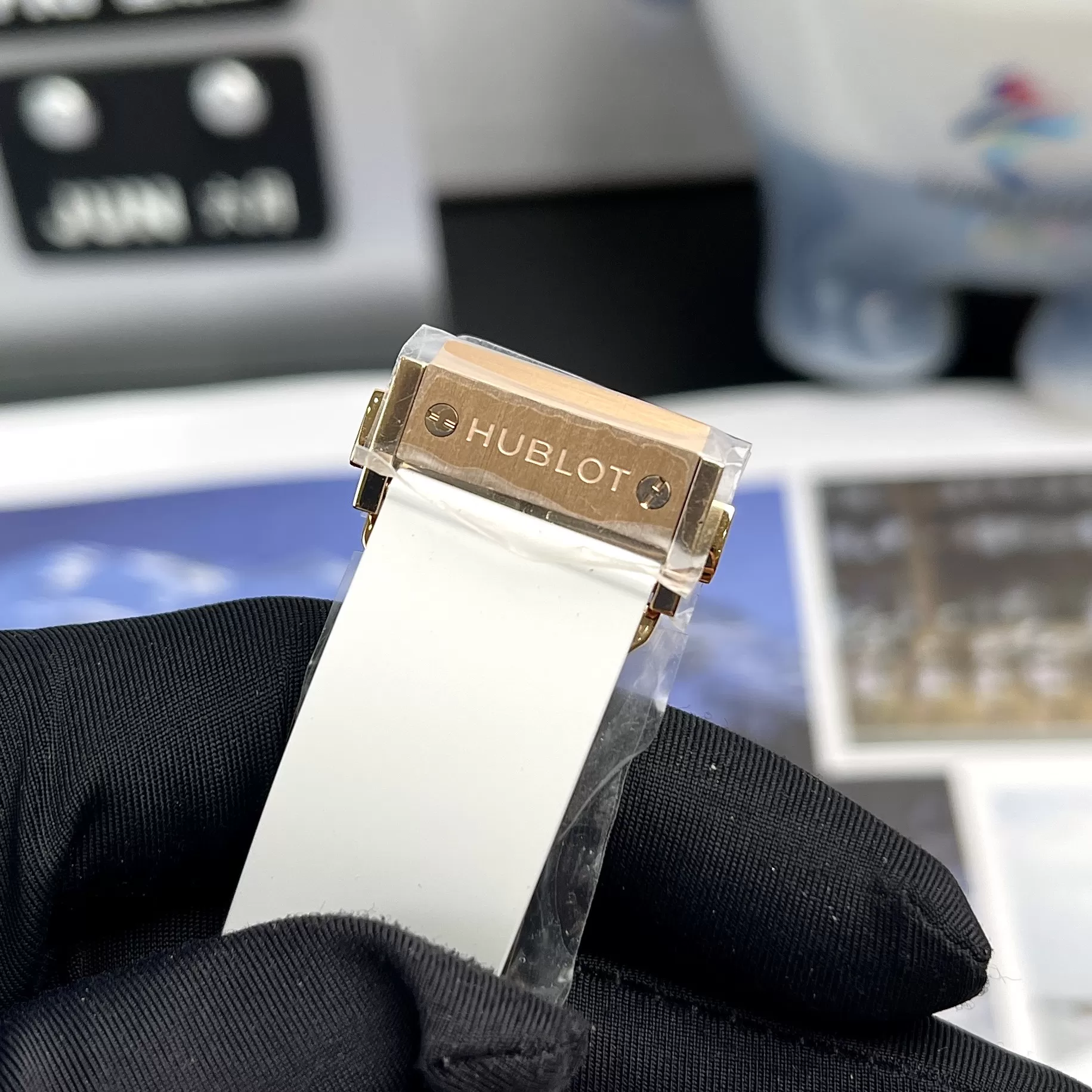 Trên quai bộ khóa, chúng ta thấy dòng chữ Hublot được khắc rõ nét. Chi tiết này tạo vừa tạo điểm nhấn vừa thể hiện né riêng của sản phẩm.