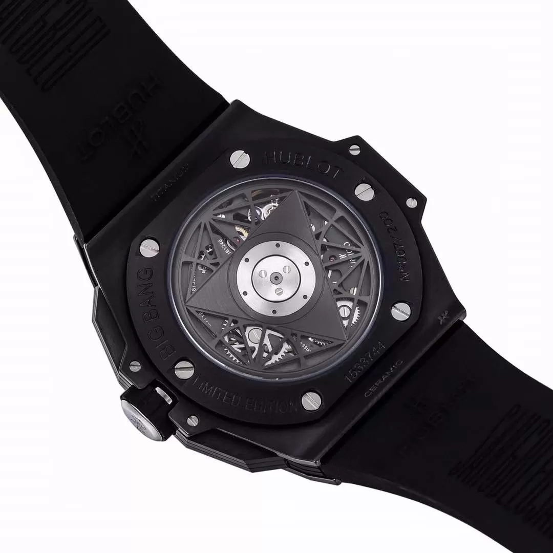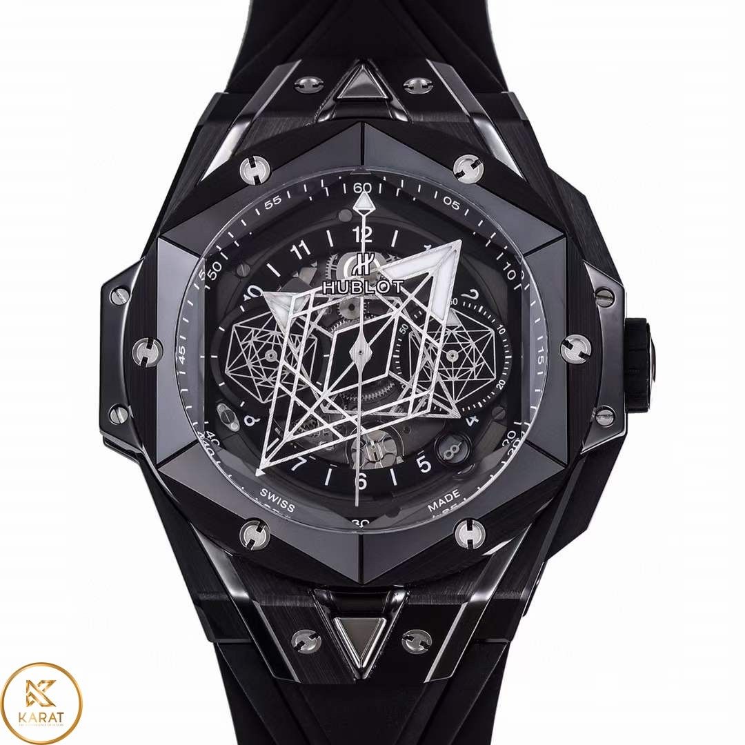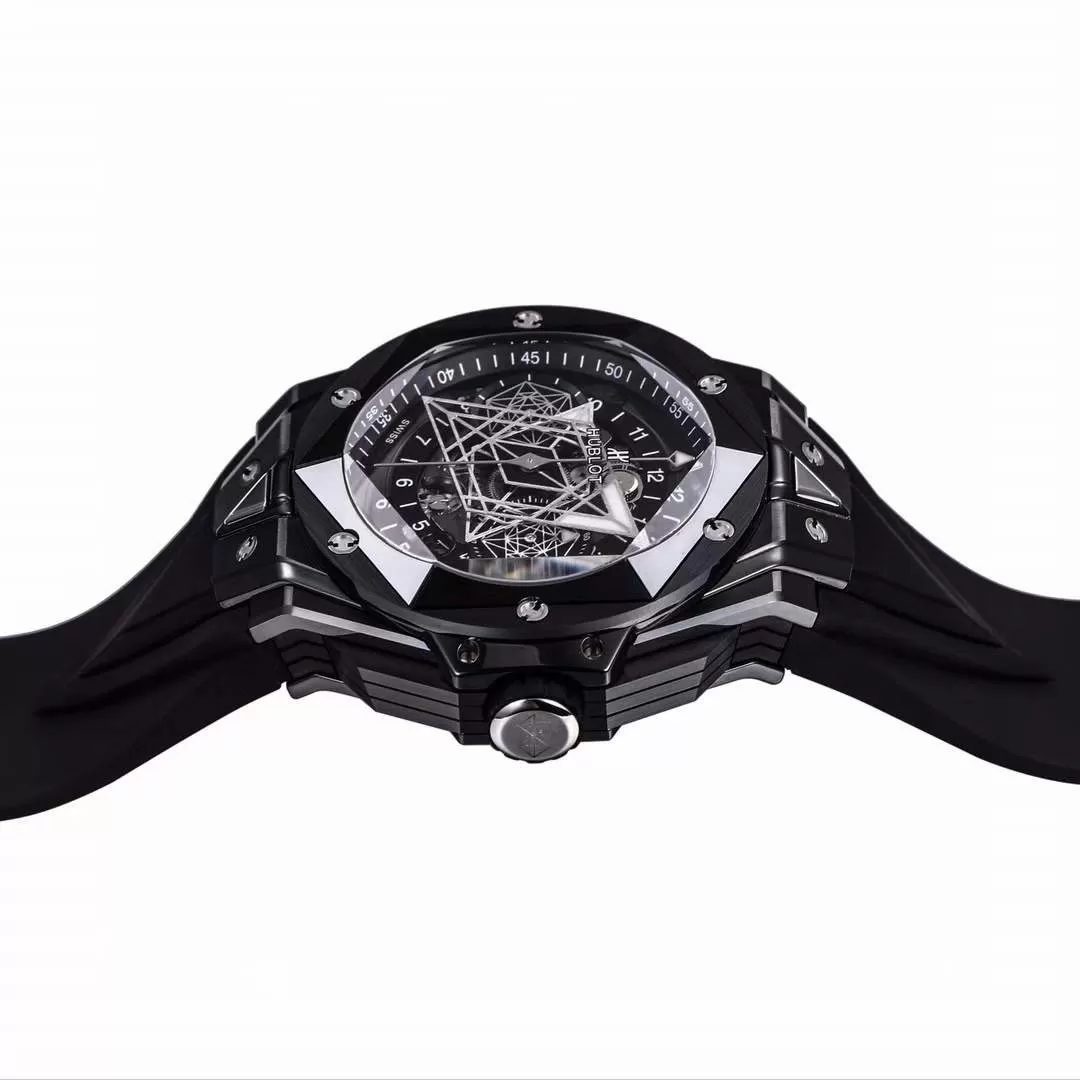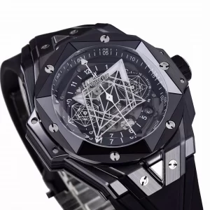 Thiết kế phía trong mặt đồng hồ đồng hồ Hublot Big Bang giống như la bàn dò hướng và các mạng nhện tạo ra một phong cách riêng. Đây cũng là những chức năng phụ của chiếc đồng hồ Hublot fake này đấy các bạn nhé.