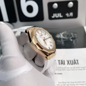 Đồng hồ Hublot fake 1 sử dụng chất liệu vàng thật, loại King Gold độc quyền thương hiệu cho khung vỏ. Vì vậy, vừa nâng cao giá trị sản phẩm, lại nâng tầm thẩm mỹ độc đáo. Kích thước mặt kính vừa phải khoảng 40mm phù hợp cổ tay nhiều người.