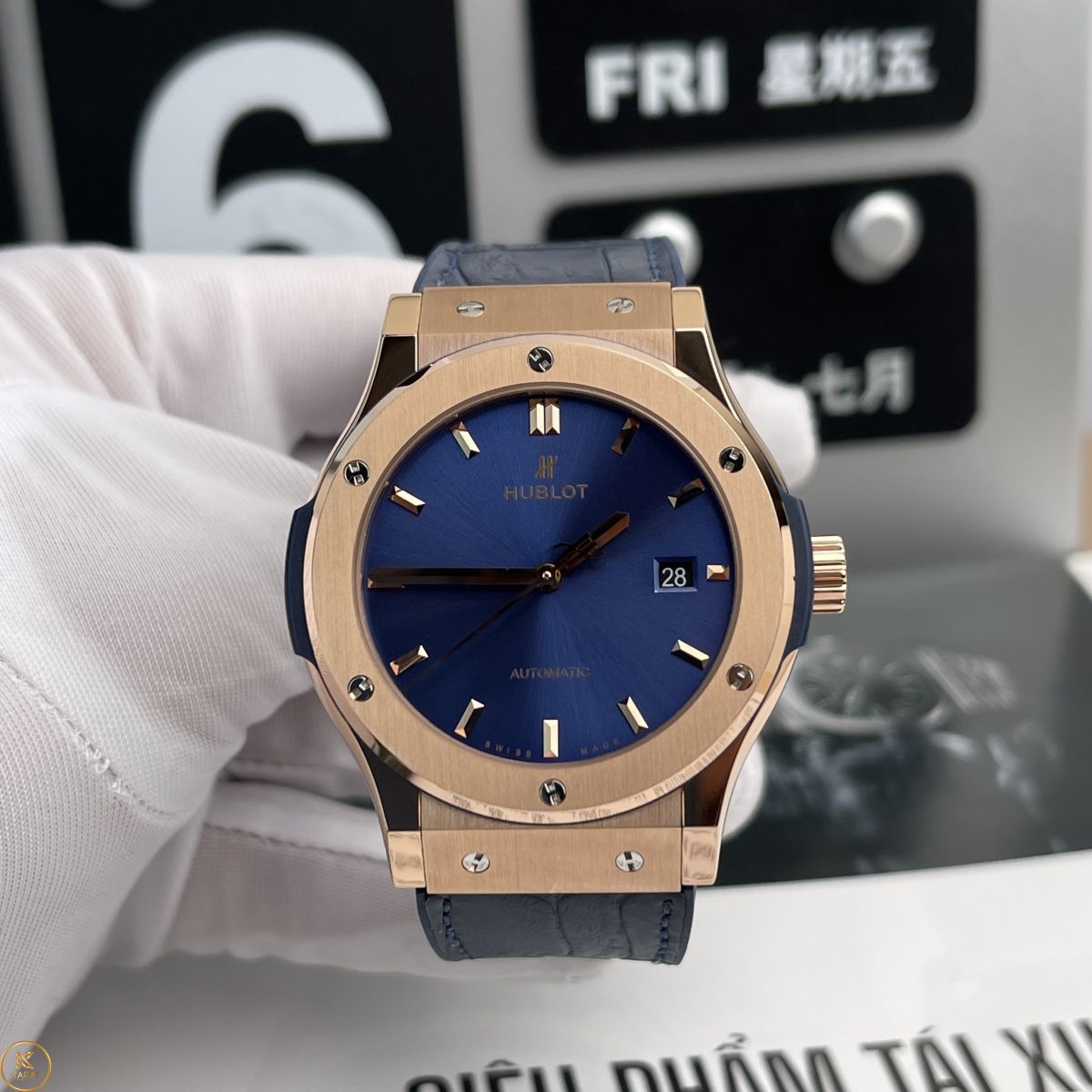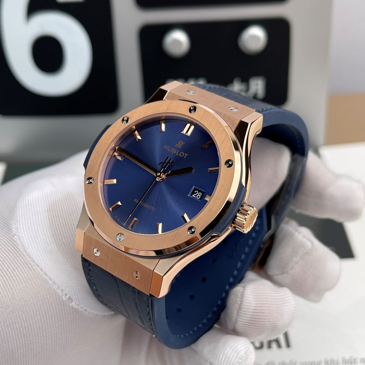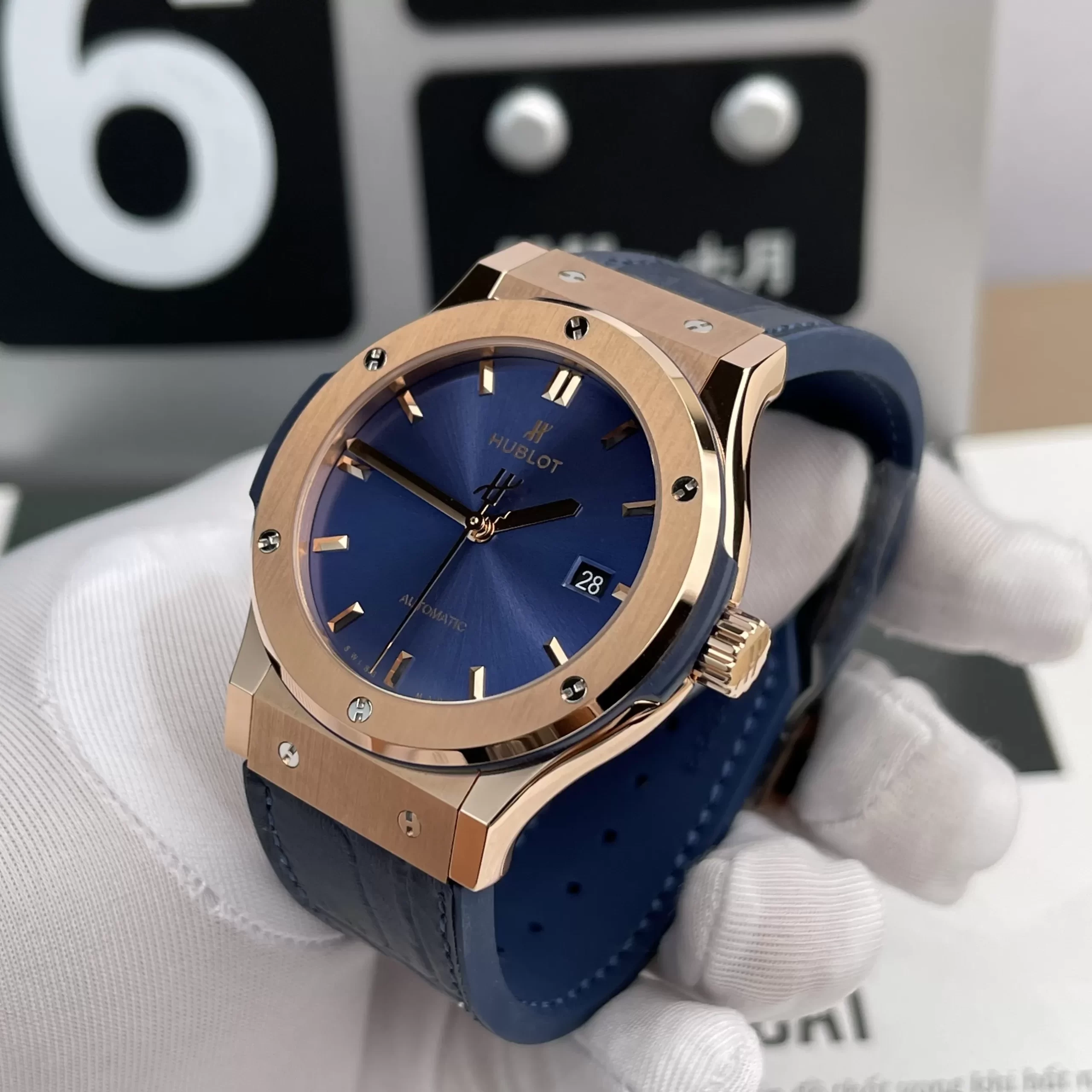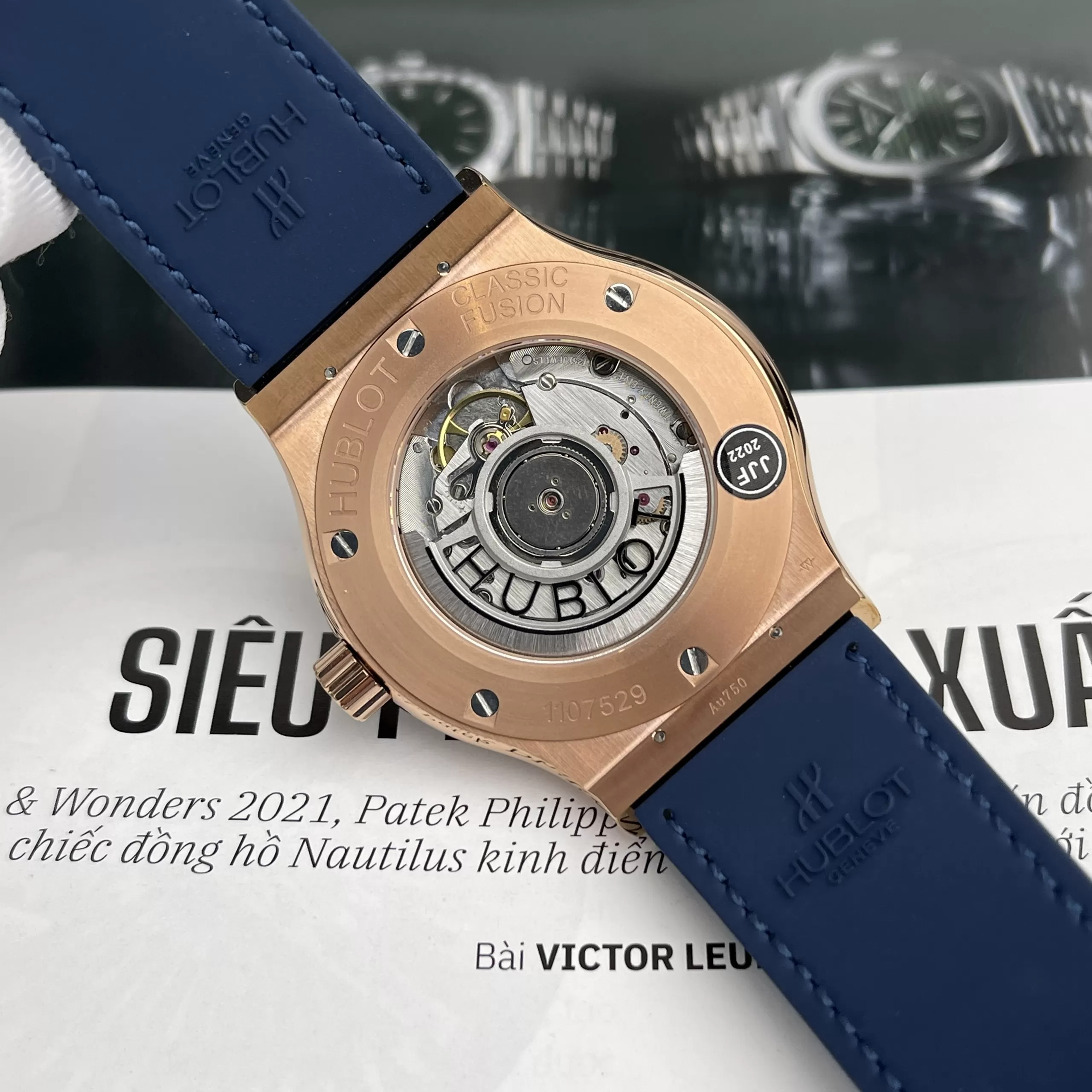 Dây đeo đồng hồ Hublot rep 1:1 Classic Fusion Blue King Gold 542 hài hoà mặt số thời thượng