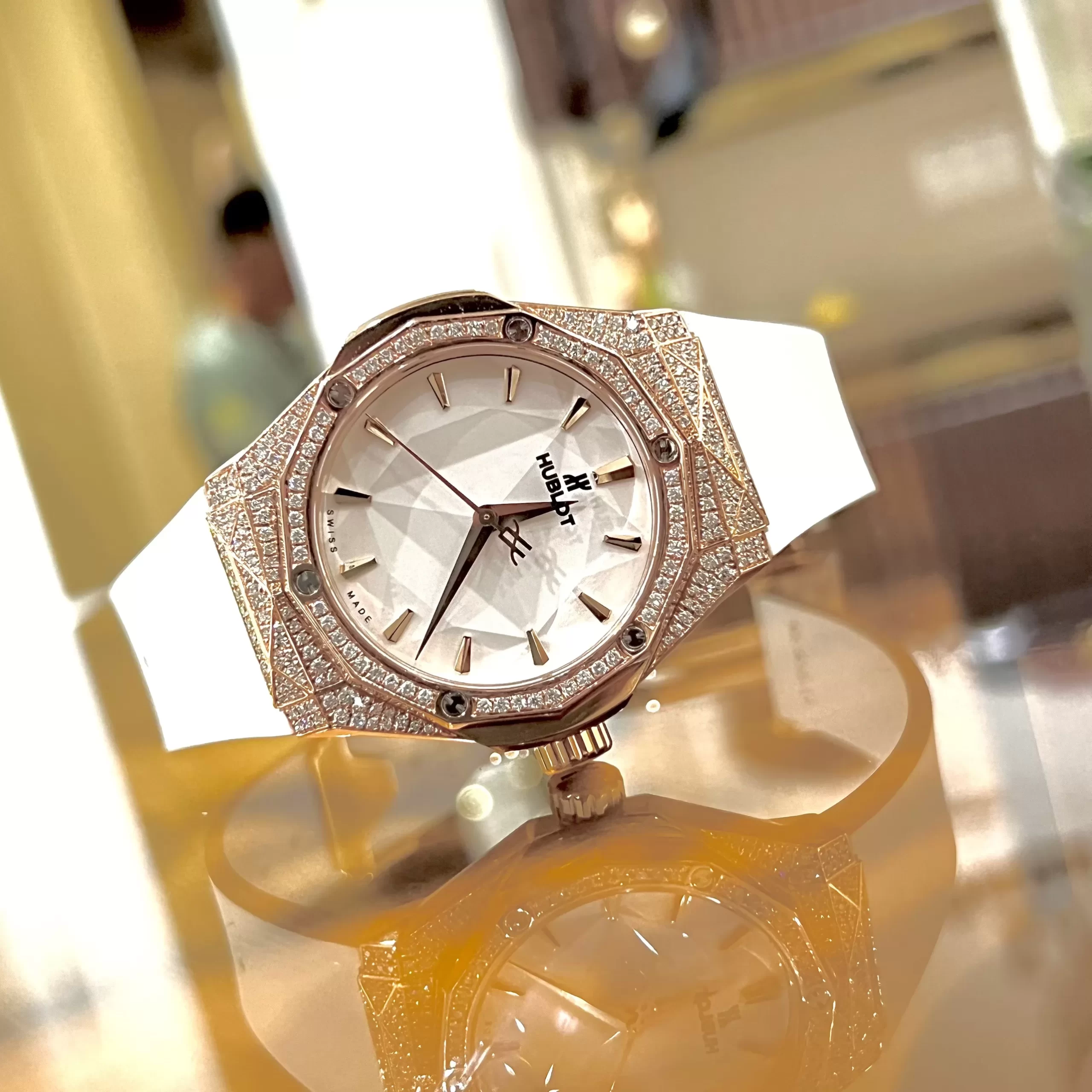 Xưa nay, bộ vỏ Đồng Hồ Hublot Fake chất lượng cao đã có nhiều bề mặt và góc cạnh. Vì vậy, đồng hồ trở nên nổi bật hơn nhờ nạm kín kim cương giúp khuếch đại khả năng phản xạ ánh sáng.