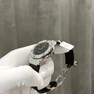 Tất cả viên kim cương đính trên đồng hồ là thiên nhiên chất lượng cao cực sáng. Sản phẩm đi kèm là hộp sổ thẻ và giấy kiểm định từ trung tâm uy tín. Vì vậy, người mua yên tâm có thể kiểm định ở bất cứ đâu khi cảm thấy nghi ngờ.