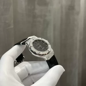 Kích thước tương đương 38mm vừa vặn trên cổ tay nhiều đối tượng. Đặc biệt, bộ khóa thông minh giúp người đeo dễ chỉnh sửa sao cho thoải mái nhất. Bộ máy bên trong Đồng Hồ Hublot Classic Fusion Độ Kim fake 1:1 sử dụng Automatic, Cal HUB 1110.
