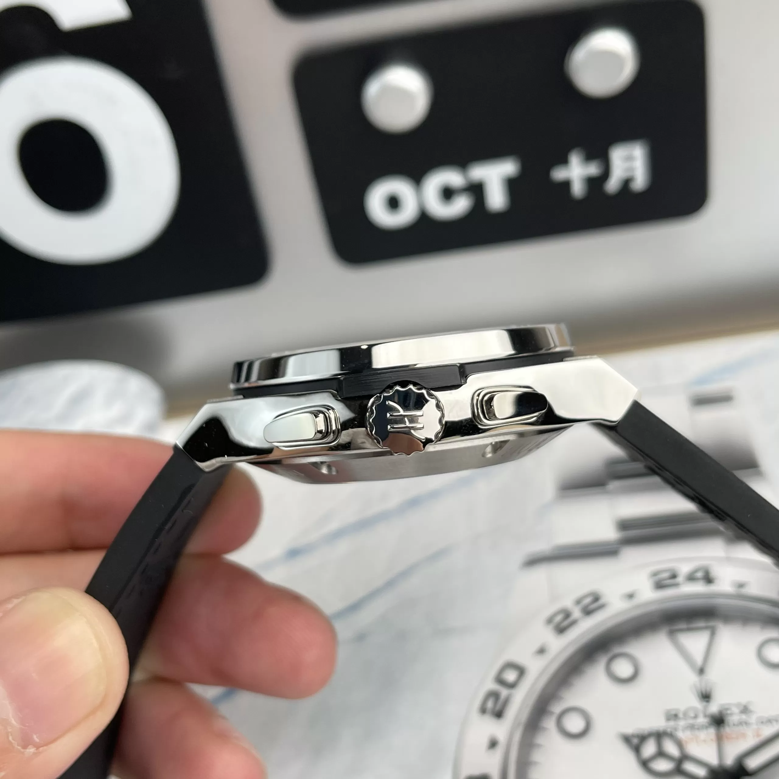 Vẻ đẹp cá tính thể hiện rõ nét nhất ở đồng hồ Hublot siêu cấp Classic Fussion Chronograph Titanium. Đó là 3 chiếc núm chỉnh thông số đồng hồ ở phía bên tay phải. Kích thước lớn, thiết kế ấn tượng tạo ra điểm nhấn ngay tại đây. Nó như một bộ hệ thống điều khiển toàn bộ chiếc đồng hồ Hublot fake cao cấp. Nhìn vào nó bạn thấy sự quan trọng và mạnh mẽ giống như cá tính của một người đàn ông bản lĩnh.