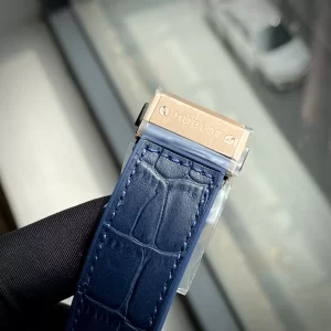 Đồng hồ Hublot siêu cấp Fusion Classic King Gold được nhà sản xuất trang bị dây đeo theo công thức đặc biệt. Đó là sự kết hợp của vẻ đẹp sang trọng, đặc trưng êm ái bền bỉ từ da cá sấu và cao su. Tông màu xanh hiện đại ăn khớp mặt số bên trong, nâng cao thẩm mỹ Hublot fake Hà Nội. Thiết kế khoá gập linh hoạt tuỳ chỉnh theo độ vừa vặn cổ tay, đảm bảo sự thoáng mát, tránh bí bách, không kích ứng da.