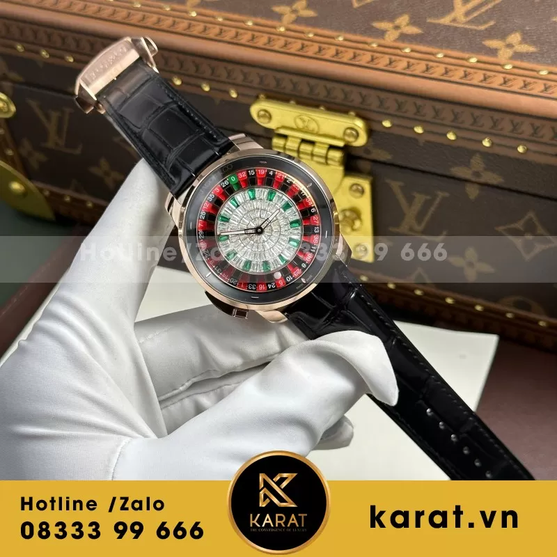 Đồng hồ Jacob & Co Casino Roulette Replica 1 1 dây da màu đen mặt trắng 44mm
