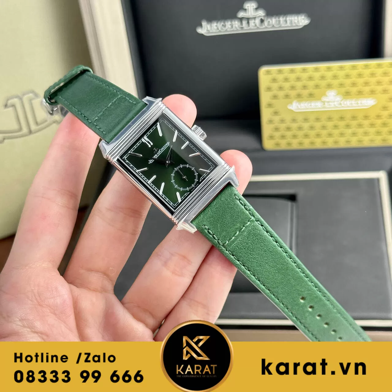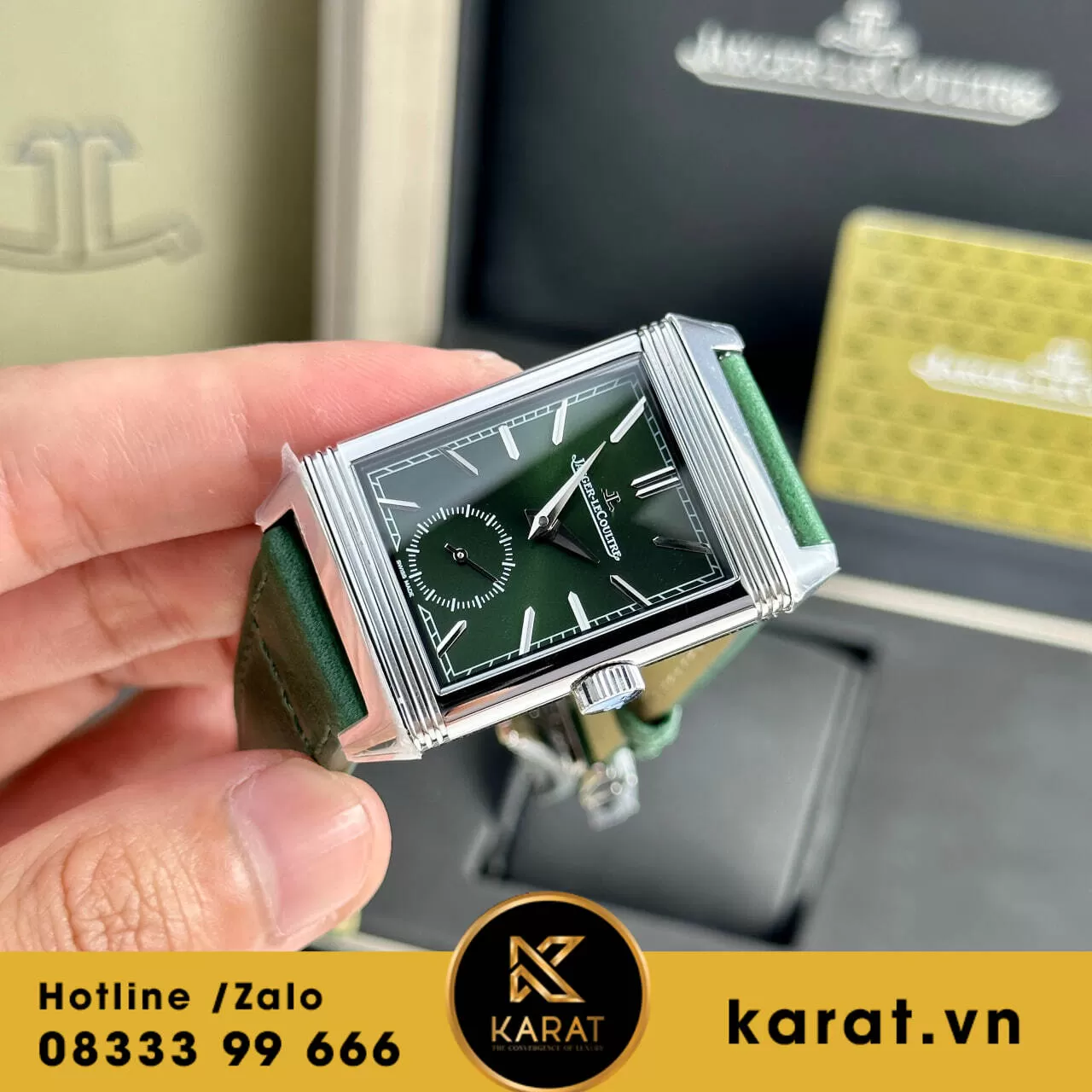 Hiện tại, Đồng hồ Jaeger LeCoultre Master Reverso Tribute Monoface Small Seconds mặt xanh lục fake 1:1 đang có sẵn tại karat.vn. Liên hệ với chúng tôi ngay hôm nay để sở hữu cho mình chiếc đồng hồ đẳng cấp này.