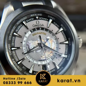 Omega Aqua Terra Worldtimer replica với kích thước 43mm mang đến vẻ ngoài mạnh mẽ và sang trọng. Mặt số đồng hồ được thiết kế tinh xảo với bản đồ thế giới ở trung tâm, bao quanh bởi các múi giờ của các thành phố lớn trên thế giới. Kim và vạch số được phủ lớp dạ quang, giúp người đeo dễ dàng xem giờ trong mọi điều kiện ánh sáng. Vỏ đồng hồ được chế tác từ thép không gỉ cao cấp, đảm bảo độ bền và vẻ đẹp lâu dài.