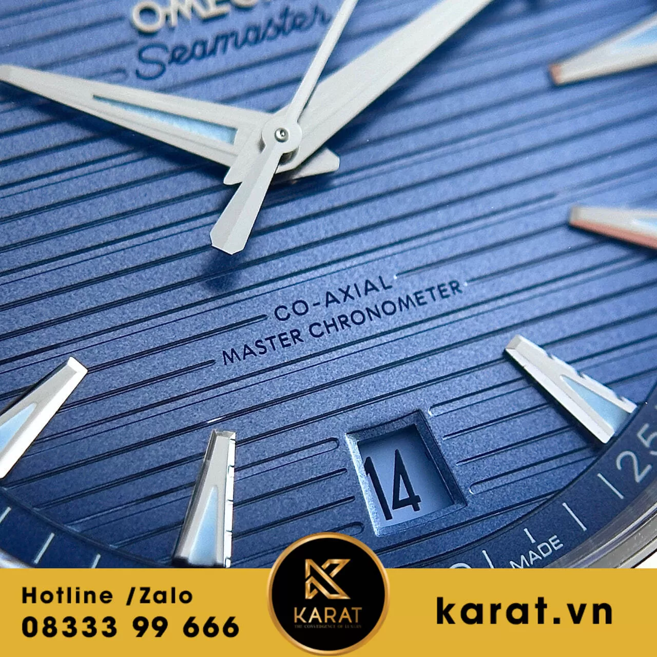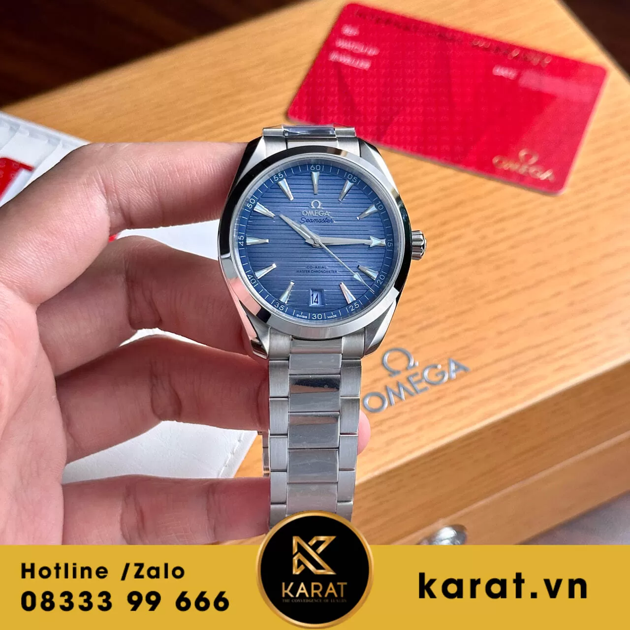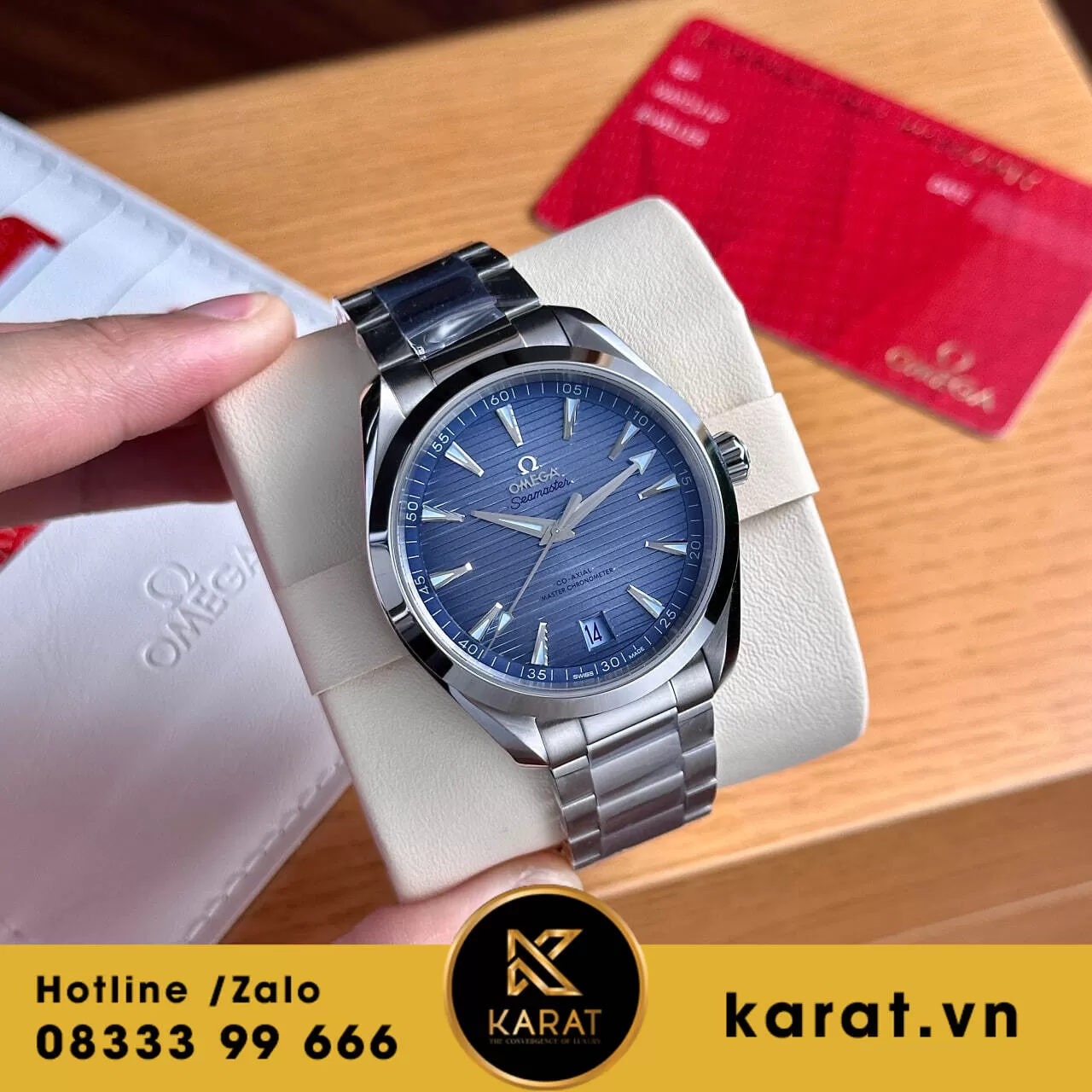 Omega Seamaster Aqua Terra 150M Co-Axial Master với kích thước 41mm là sự kết hợp hoàn hảo giữa thiết kế thanh lịch và phong cách thể thao. Mặt số của chiếc đồng hồ được trang trí bởi các họa tiết vân gỗ Teak độc đáo, gợi nhớ đến những chiếc thuyền buồm sang trọng. Các kim và vạch số được phủ lớp dạ quang, giúp dễ dàng xem giờ ngay cả trong điều kiện thiếu sáng. Vỏ đồng hồ làm từ thép không gỉ cao cấp, tạo nên vẻ ngoài sáng bóng và bền bỉ.