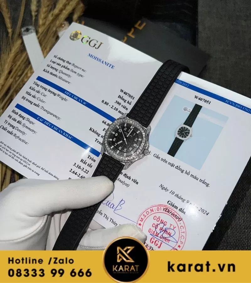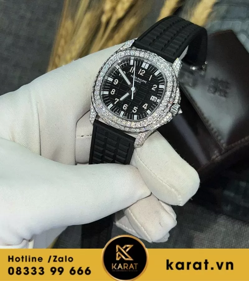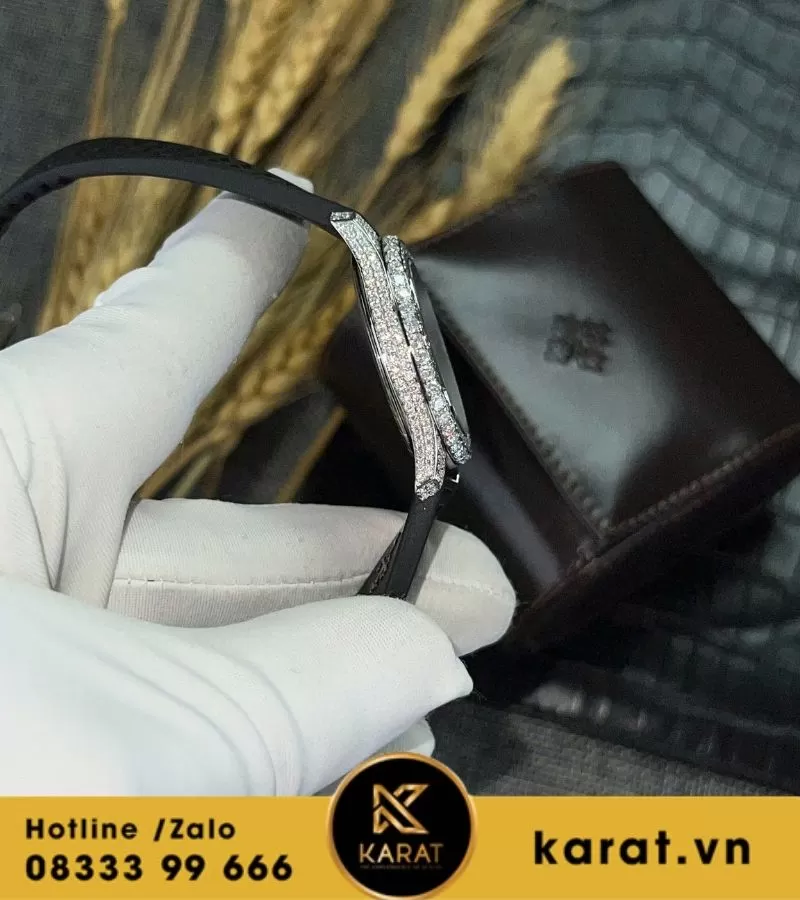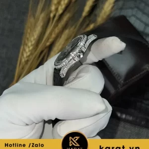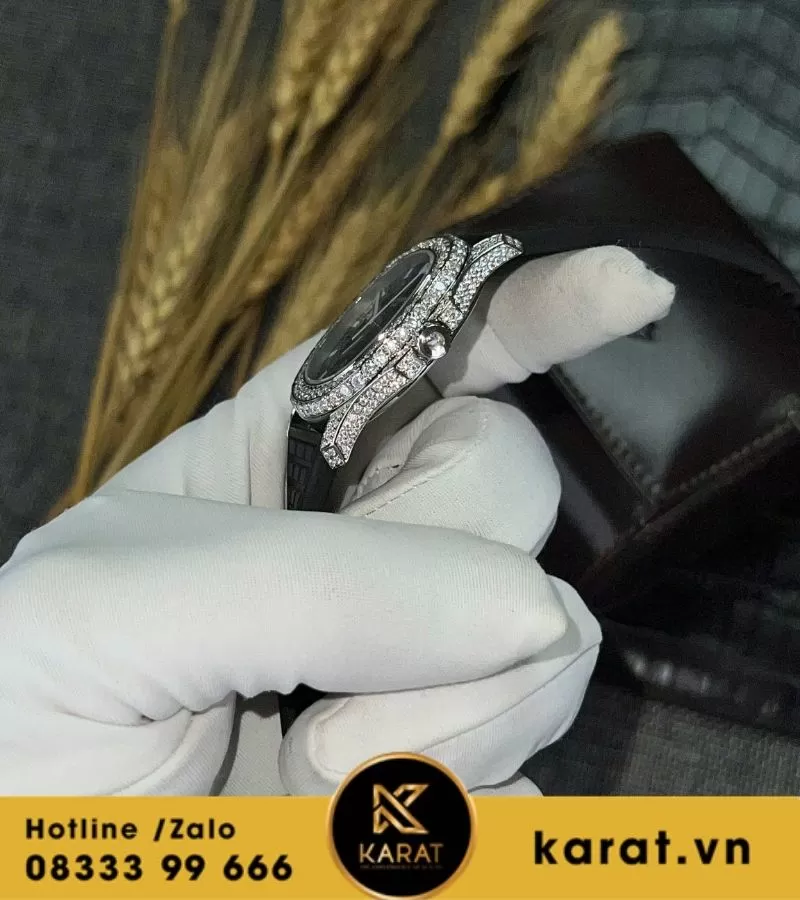 Tại Karat.vn, bạn có thể dễ dàng sở hữu mẫu Patek Philippe 5067 mặt đen độ full Moissanite với mức giá hợp lý, chế độ bảo hành 5 năm – hỗ trợ trọn đời máy, cùng nhiều dịch vụ hậu mãi cao cấp: spa làm mới, thay pin, và thu đổi lên đời.