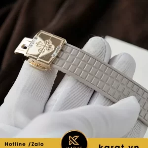 Dây cao su nâu cao cấp, thiết kế thể thao nhưng thanh lịch, kết hợp khóa gập vàng 18K khắc logo Patek Philippe tinh xảo – tạo sự chắc chắn, thoải mái và hiện đại.