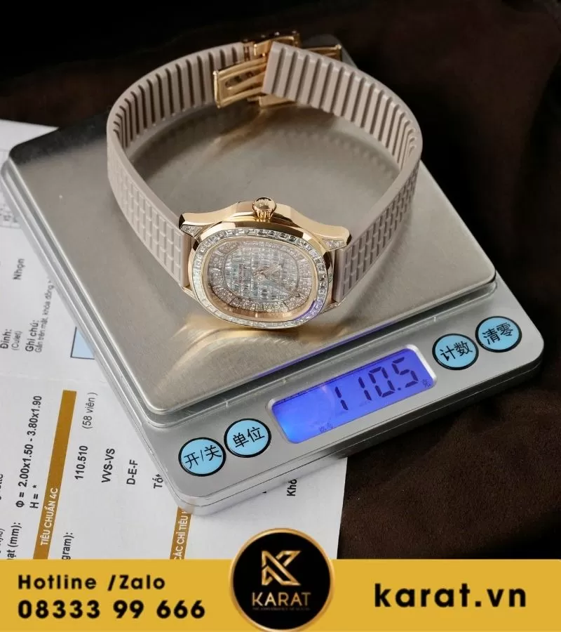 Đồng Hồ Patek Philippe Aquanaut 5062/450R-001 chế tác vàng khối kim cương thiên nhiên baguette