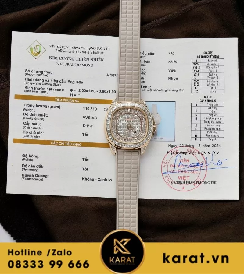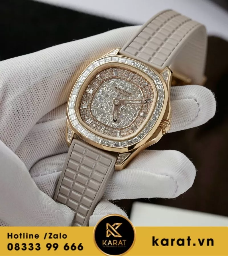 Karat.vn tự hào là đơn vị phân phối các dòng đồng hồ Patek Philippe Super Fake Aquanaut 5062/450R-001 chế tác vàng khối, đính kim cương baguette thiên nhiên, bảo hành 5 năm, thu đổi linh hoạt, hỗ trợ làm mới trọn đời.