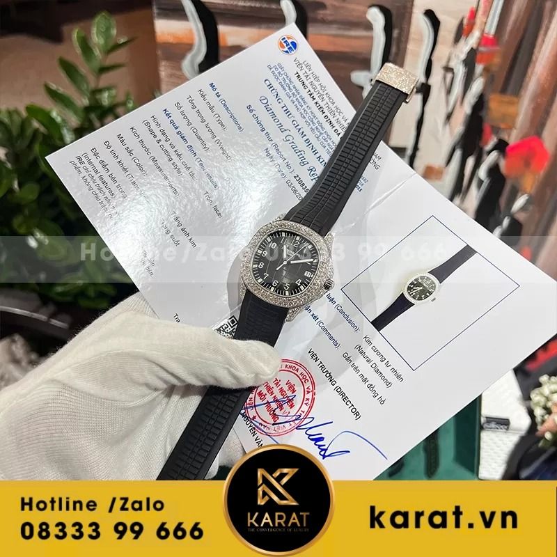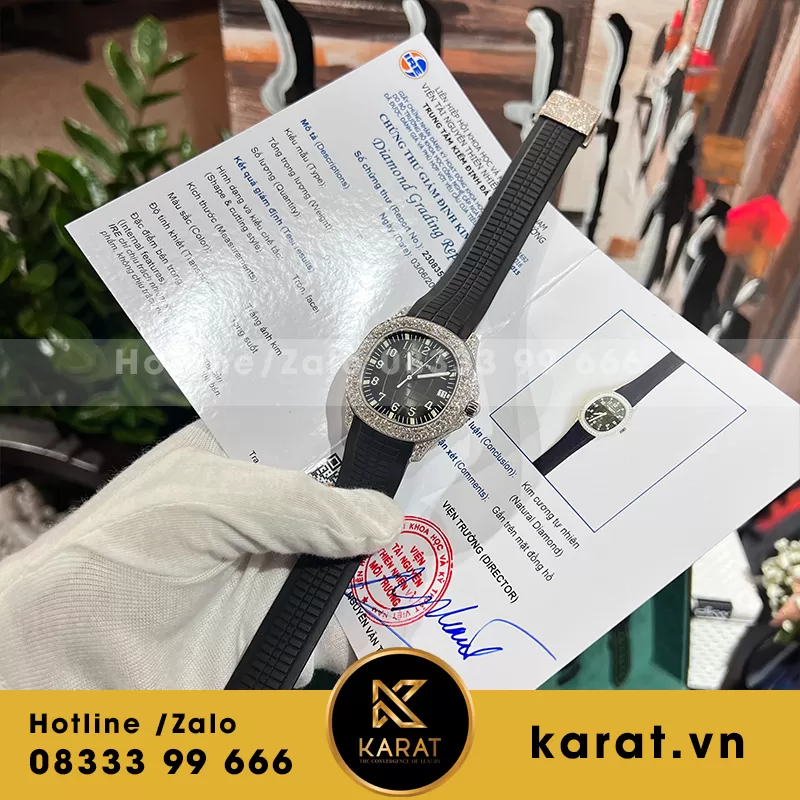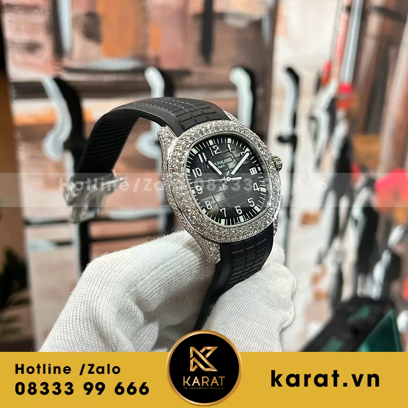 Karat.vn chuyên chế tác và phân phối đồng hồ Patek Philippe Aquanaut với kim cương thiên nhiên, bảo hành dài hạn cùng tư vấn miễn phí. Khách hàng dễ dàng đặt hàng online hoặc showroom, kèm hộp đầy đủ.