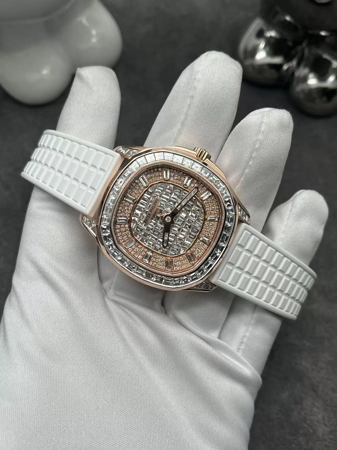 Đồng Hồ Partek Philippe Nautilus 5724 Chế tác Vàng Hồng 18k, Kim Cương Baguette