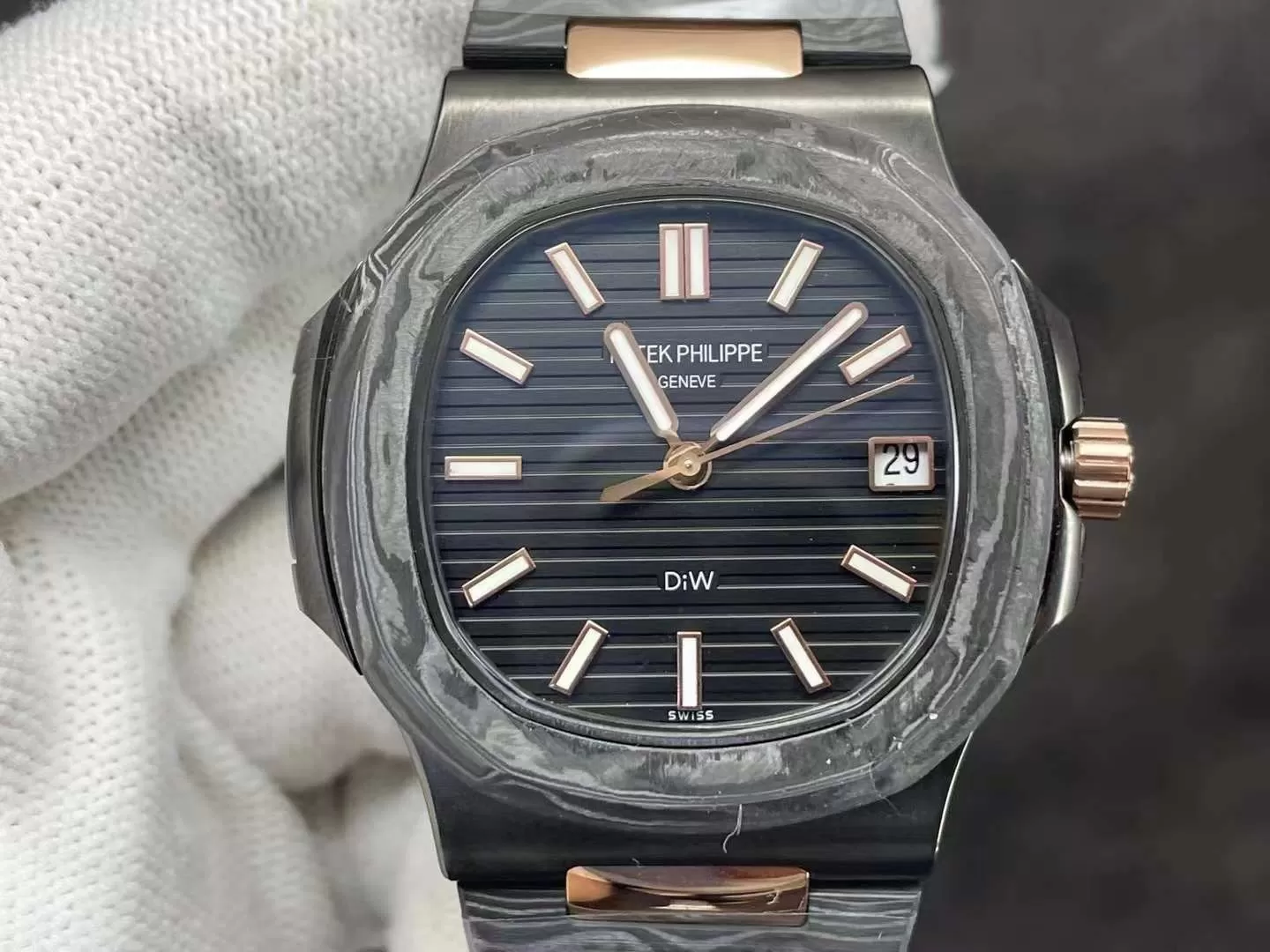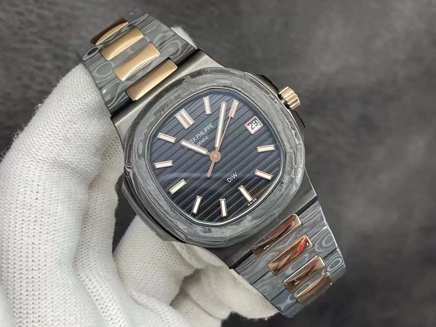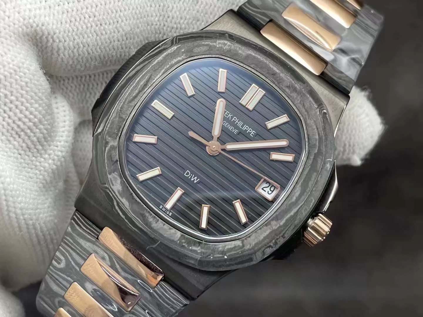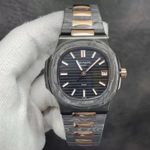 Đồng hồ Patek Philippe Nautilus Rep 5711/1A kế thừa di sản từ năm 1976, nổi bật với hình dáng “tai vịt” biểu tượng và phiên bản Rose Gold Black Dial Rep 1:1 tinh tế. Sản phẩm này nhấn mạnh sự kết hợp hoàn hảo giữa phong cách casual và xa xỉ, phù hợp cho nam giới hiện đại tìm kiếm phụ kiện đa năng.