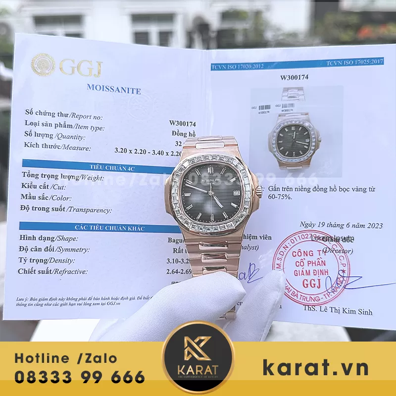 Với thiết kế xa hoa, viền kim cương tinh tế, bộ máy mạnh mẽ, đồng hồ Patek Philippe Nautilus 5723R thể hiện rõ tinh thần thủ công bậc thầy của thương hiệu danh tiếng. Nếu bạn muốn trải nghiệm phiên bản replica hoàn hảo, Karat.vn là điểm đến lý tưởng, nơi cam kết chất lượng, bảo hành uy tín và giao hàng toàn quốc, giúp bạn dễ dàng sở hữu mẫu đồng hồ đỉnh cao này