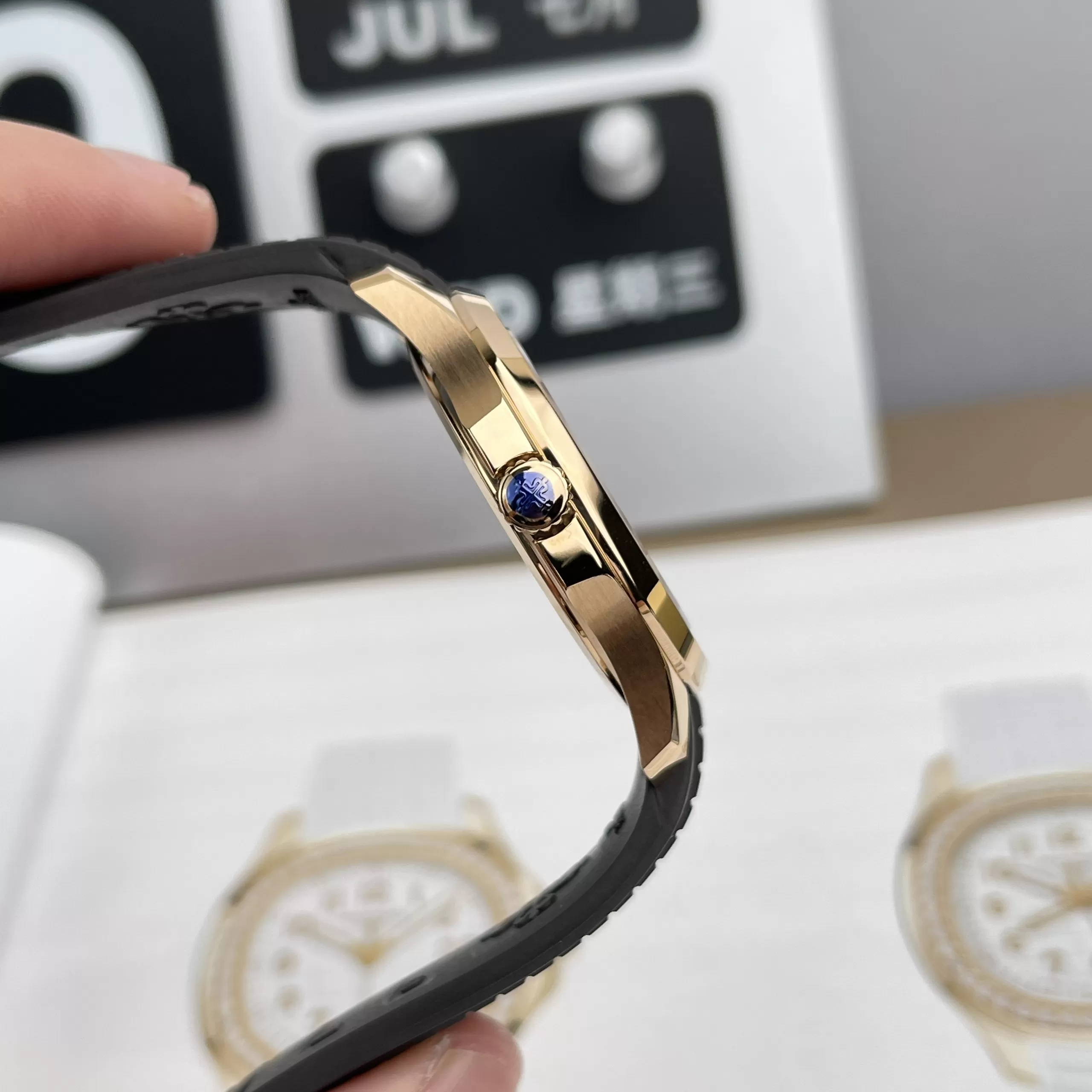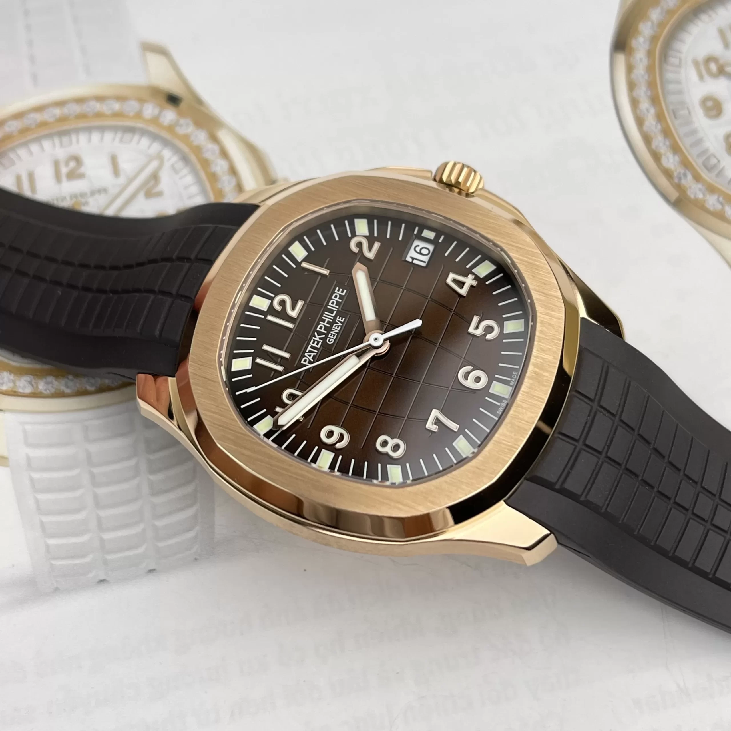 Đồng hồ Patek Philippe Aquanaut 5167R like Auth nổi bật với đường kính 40mm từ vàng hồng 18K nguyên khối, bezel tropical octagonal đặc trưng. Ra mắt như phiên bản nâng cấp dòng Aquanaut, sản phẩm này kết hợp mặt đen gradient và dây cao su đen, tạo nên sự cân bằng giữa phong cách hiện đại và độ bền vượt trội cho lối sống năng động.