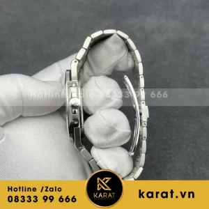 Dây đeo thép đúc bọc vàng nguyên khối, thiết kế liền mạch với mặt đồng hồ, vừa vặn và sang trọng. Cảm giác đeo nhẹ, ôm tay, tôn trọn phong thái tinh tế cho chủ nhân.