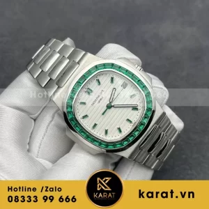 Đồng Hồ Patek Philippe Nautilus Rep 5711/113p là biểu tượng của sự đẳng cấp và hoàn mỹ trong giới sưu tầm. Phiên bản này gây ấn tượng với phần vỏ chế tác Platinum cao cấp, điểm xuyết ngọc lục bảo xanh sang trọng – biểu tượng của thịnh vượng và quyền lực. Mọi chi tiết đều được chế tác tỉ mỉ, phản chiếu tinh thần xa xỉ của thương hiệu Patek Philippe. Hãy cùng Karat.vn khám phá sức hút khó cưỡng của tuyệt tác thời gian này.