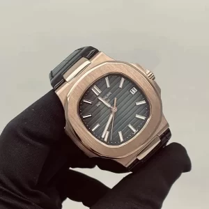 Đồng hồ Patek Philippe Nautilus 5711R-001 ra mắt như kiệt tác dòng Nautilus, sử dụng vàng hồng 18K nguyên khối cho đường kính 40mm. Thiết kế lấy cảm hứng từ cửa sổ tàu biển, kết hợp mặt số xanh dương embossed và dây kim loại đồng bộ, sản phẩm này phù hợp cho sưu tầm hoặc đeo hàng ngày với độ bền ấn tượng.