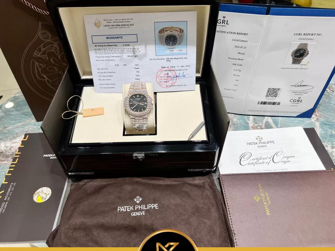 Dòng Nautilus từ Patek Philippe ra đời năm 1976 đã cách mạng hóa đồng hồ thể thao sang trọng. Đồng hồ Patek Philippe Nautilus 5711R phiên bản full Diamond Moissanite kế thừa tinh thần ấy, nâng tầm với lớp phủ Moissanite lấp lánh toàn bộ. Sản phẩm này thu hút nhờ giá trị thẩm mỹ cao, độ bền vượt trội và khả năng cá nhân hóa, trở thành lựa chọn lý tưởng cho giới sưu tầm đồng hồ cao cấp.