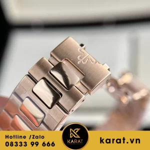 Đồng hồ Patek Philippe rep 1.1 sở hữu thiết kế dây kim loại ôm sát, khóa gập vàng an toàn, mang đến sự thoải mái lâu dài, dễ phối hợp trang phục.