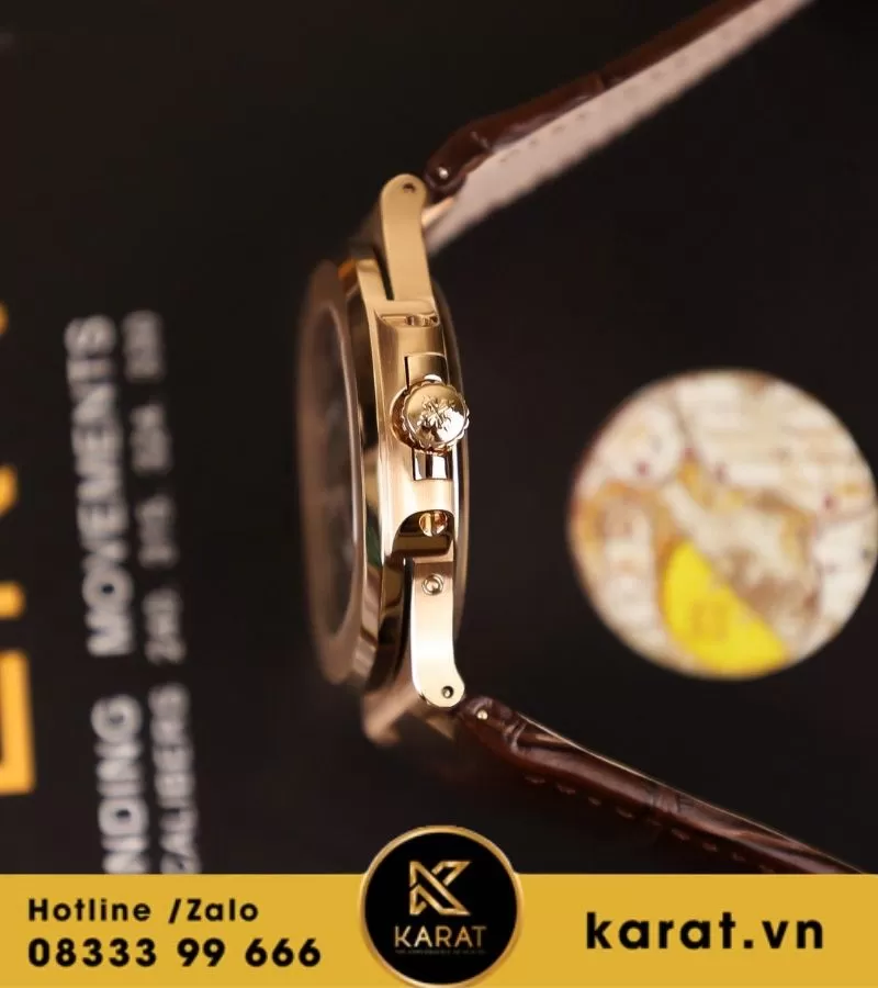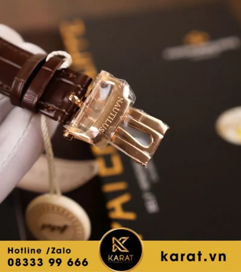 Mẫu đồng hồ sở hữu vỏ 40mm được chế tác từ thép cao cấp mạ vàng hồng tinh tế, với từng đường cắt, góc cạnh đều được hoàn thiện bằng công nghệ đánh bóng xen kẽ phay xước đặc trưng của dòng Nautilus. Vỏ cong mềm mại, bám sát cổ tay, vừa mang vẻ mạnh mẽ, vừa toát lên nét thanh lịch khó cưỡng.