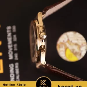 Sử dụng dây da cao cấp khâu thủ công, tông nâu trầm đồng điệu với mặt số, giúp tổng thể thêm phần sang trọng và cổ điển. Chất da mềm, ôm cổ tay êm ái, kết hợp khóa gập chắc chắn, mang lại cảm giác đeo nhẹ nhàng, linh hoạt.